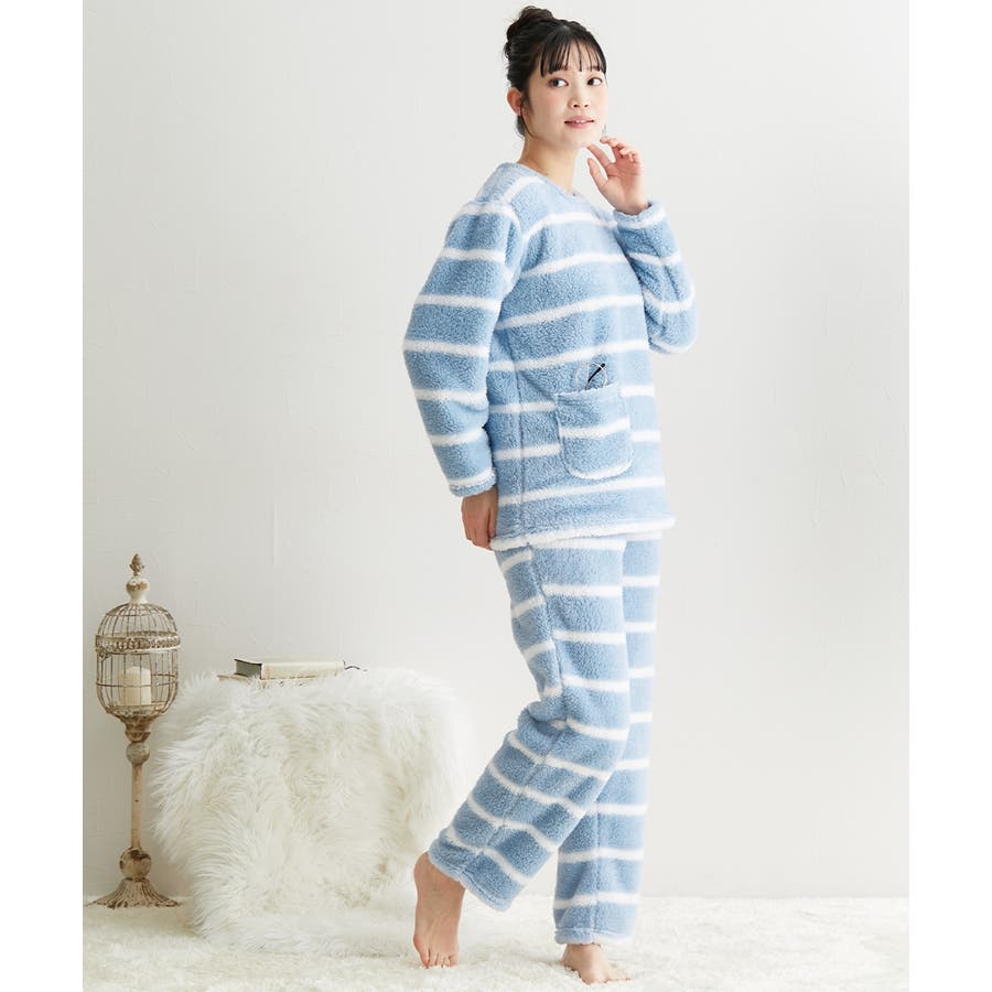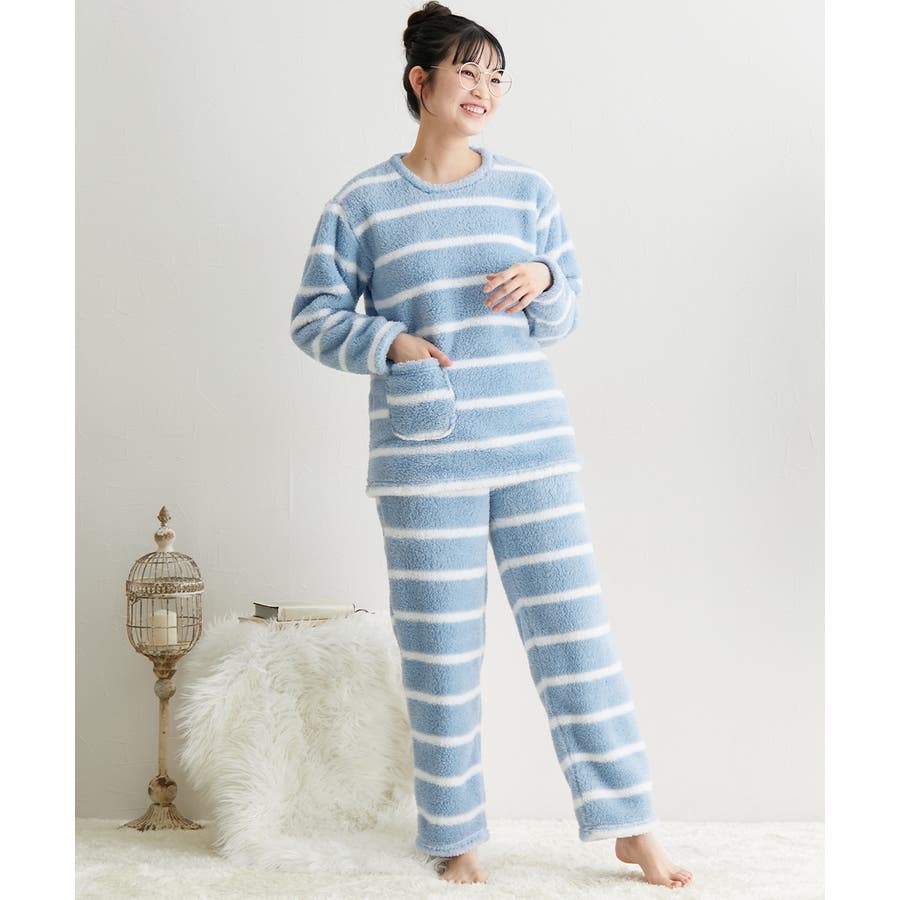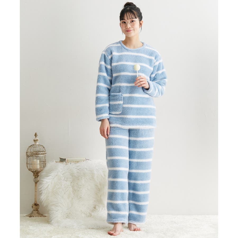 【ブルー系ボーダー】パジャマ ルームウェア 大きいサイズ