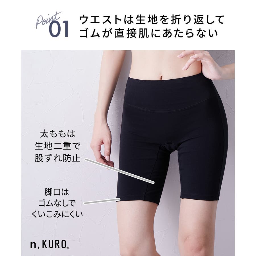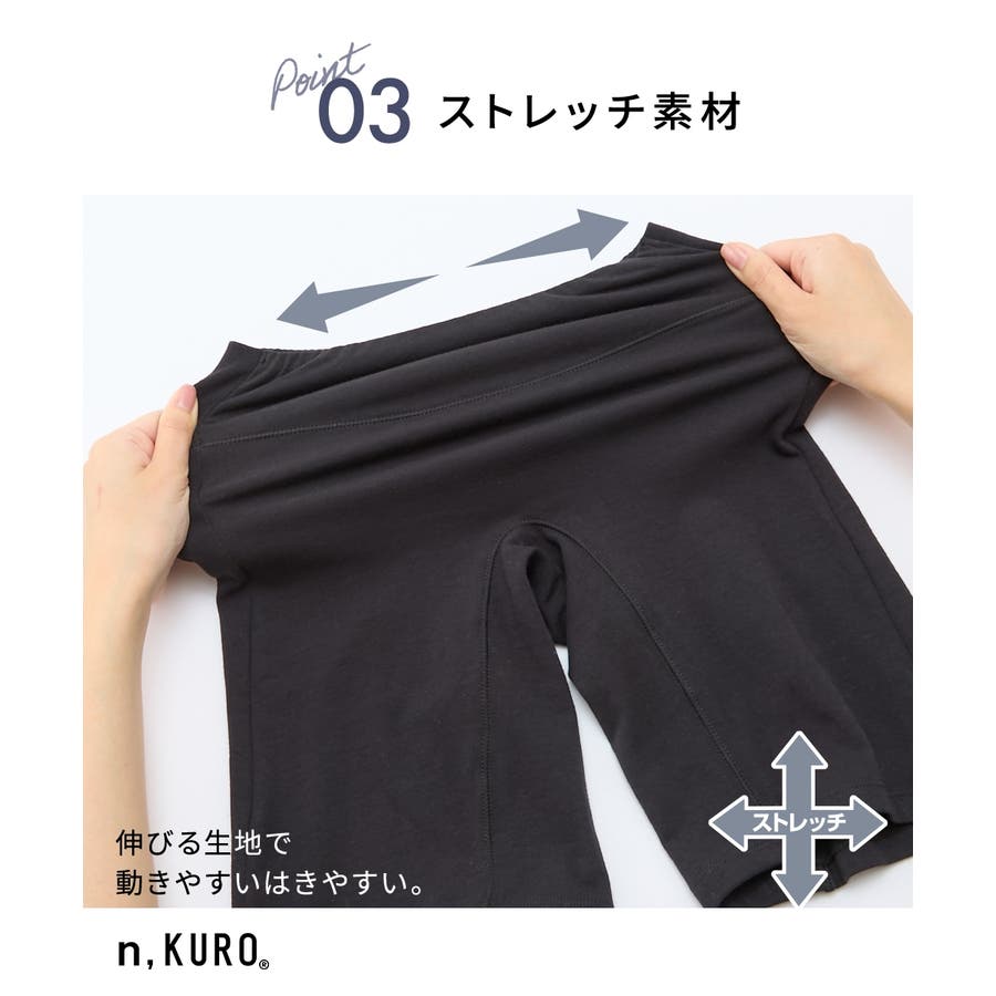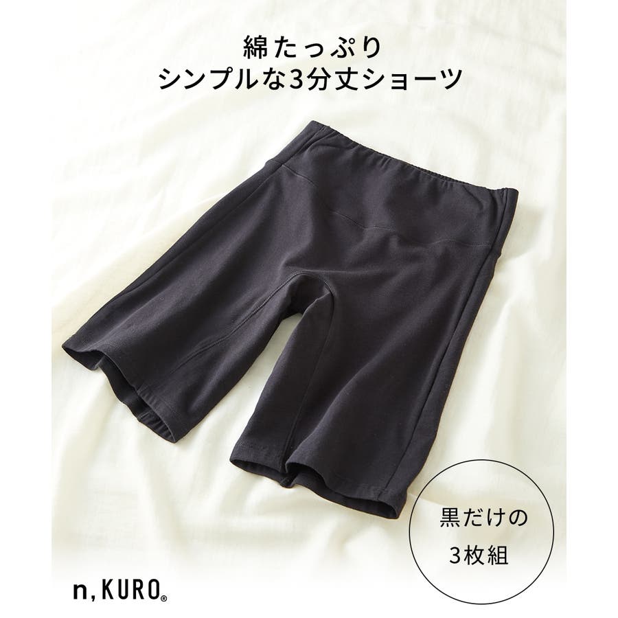 n,KURO 綿混ストレッチ お腹らくちん股ずれ防止深ばき丈ロングショーツ3枚組