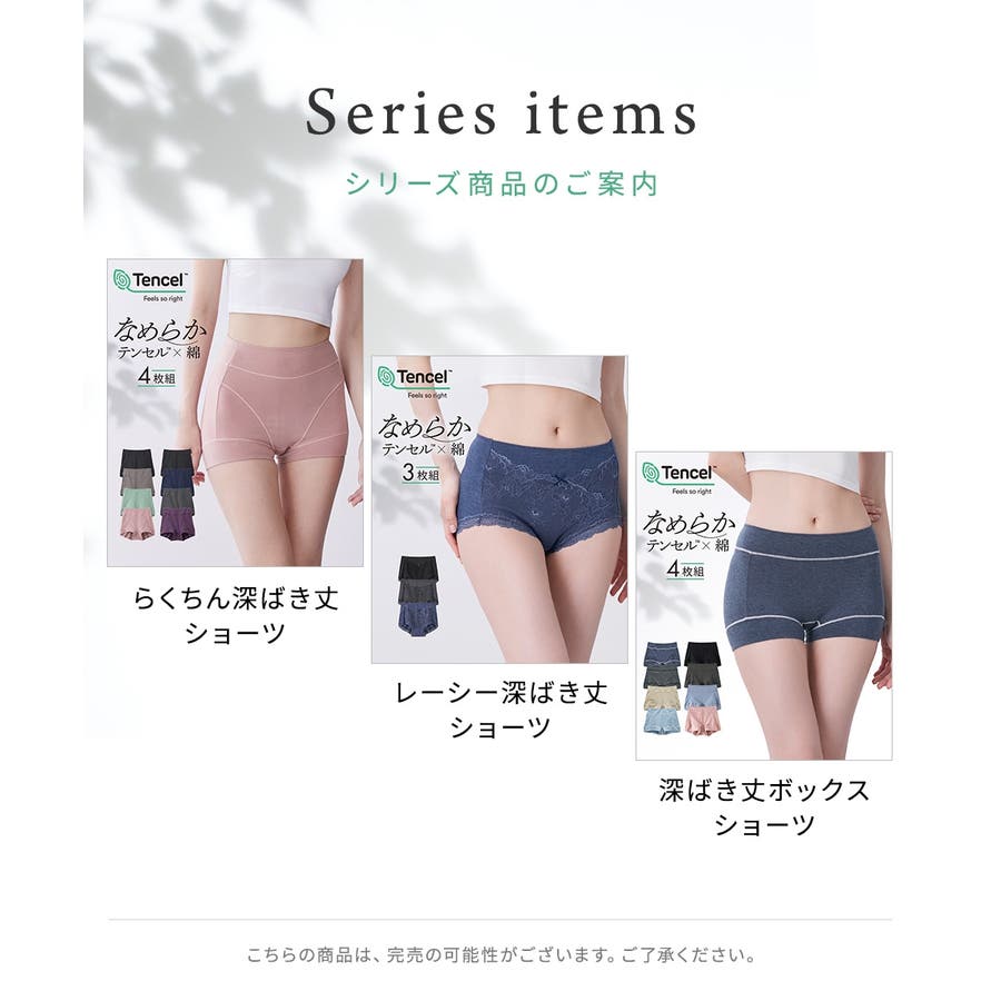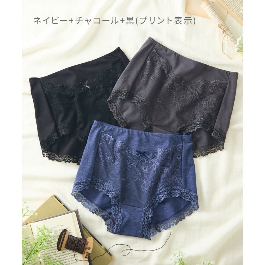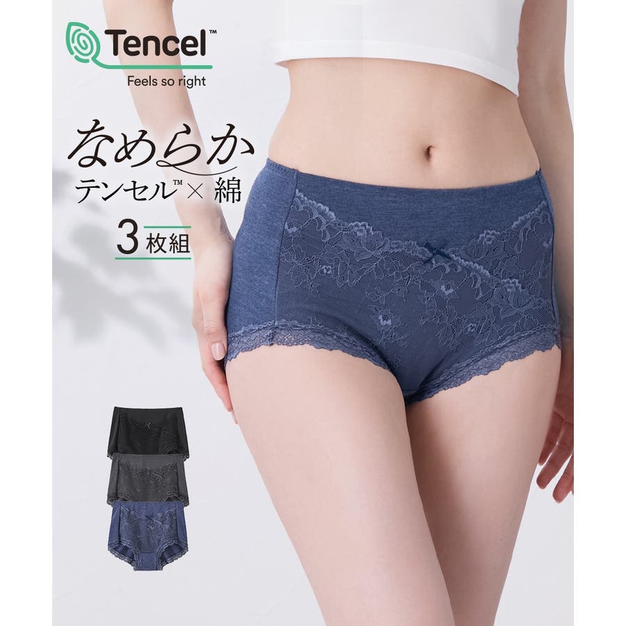 テンセルTM繊維・綿混ストレッチレーシー深ばき丈ショーツ3枚組