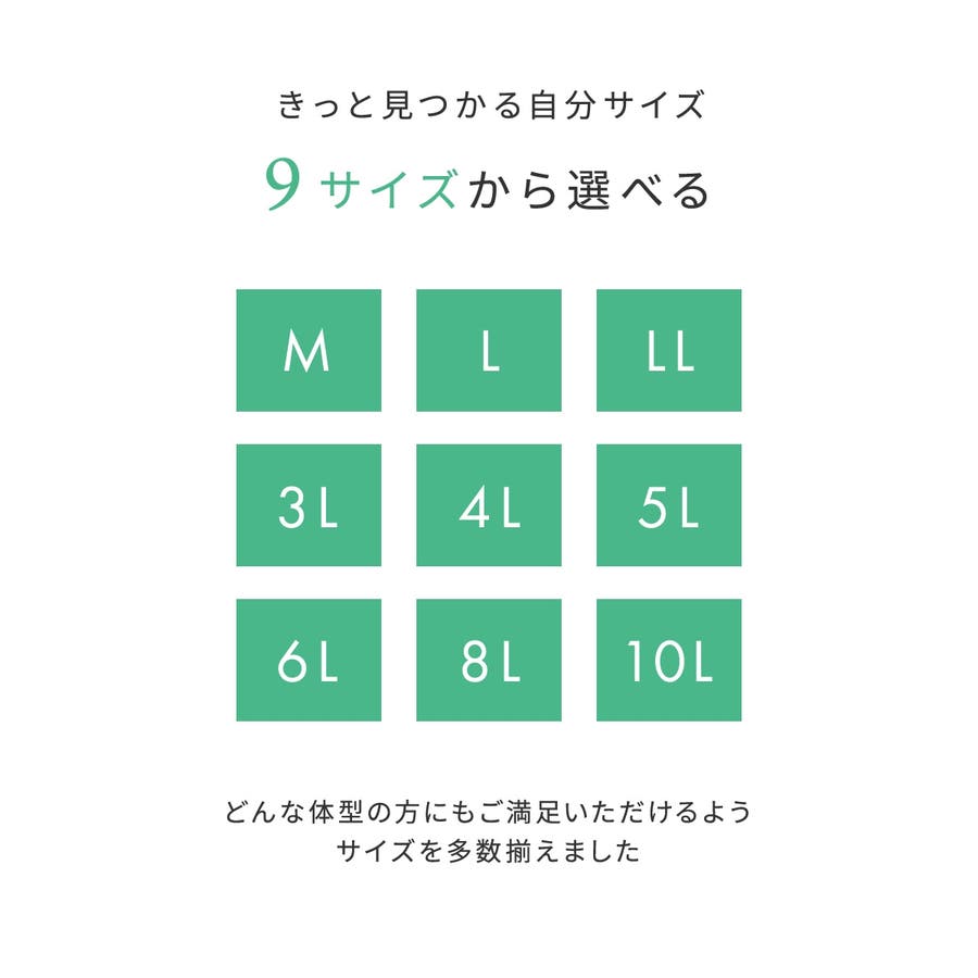 | サイズ | M / L / LL / 3L / 4L / 5L / 6L / 8L / 10L |