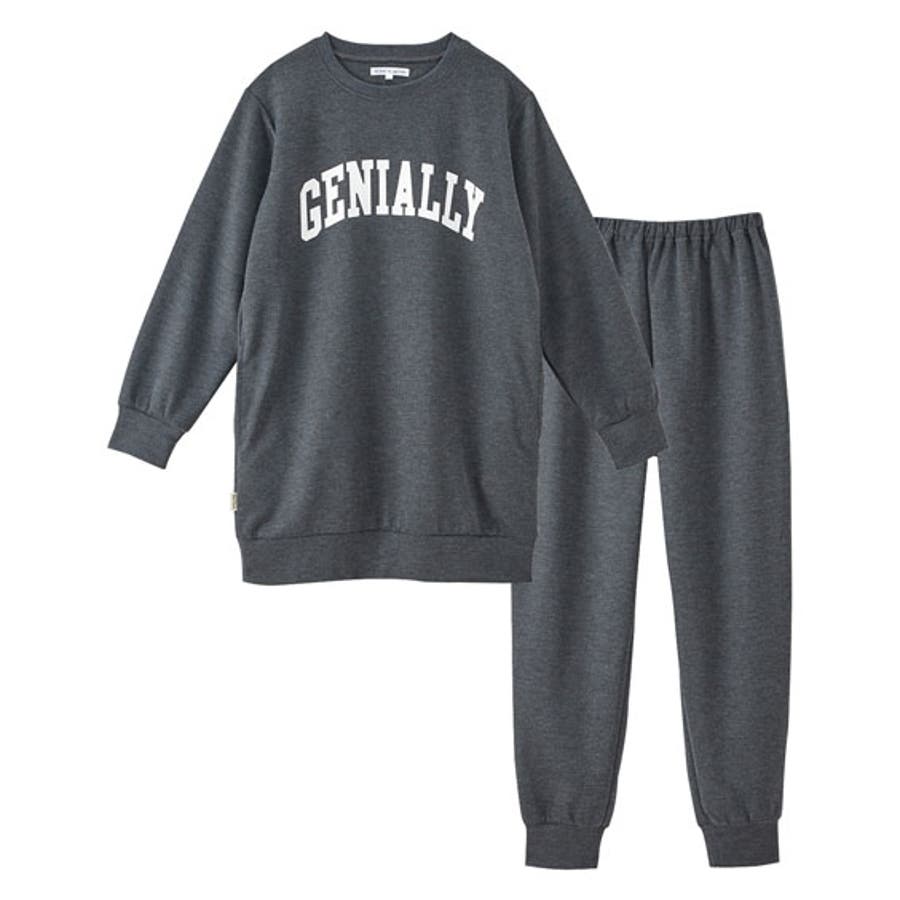 やわらかダンボールニットビッグトレーナー風ロゴ入りルームウェア上下セット