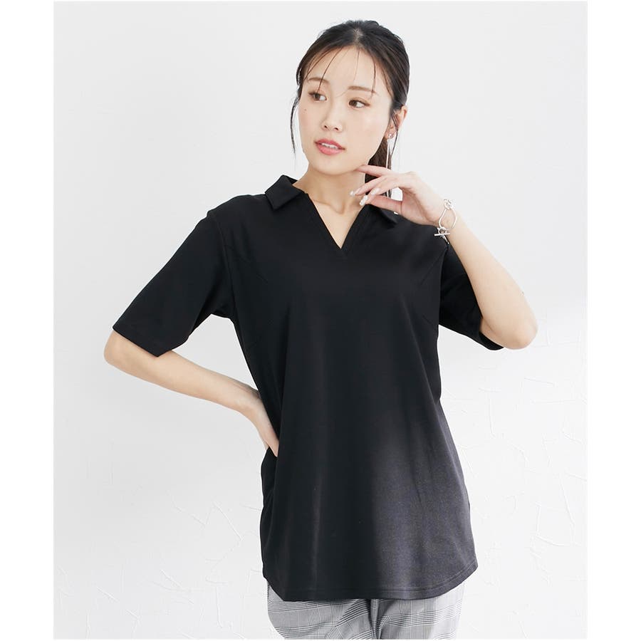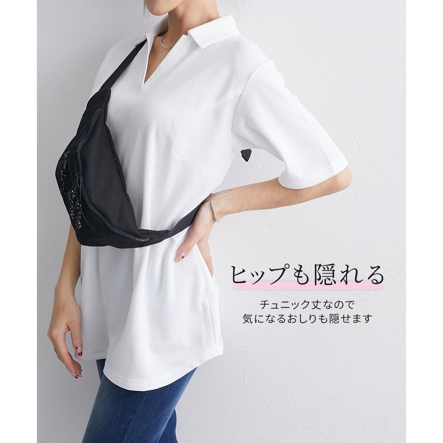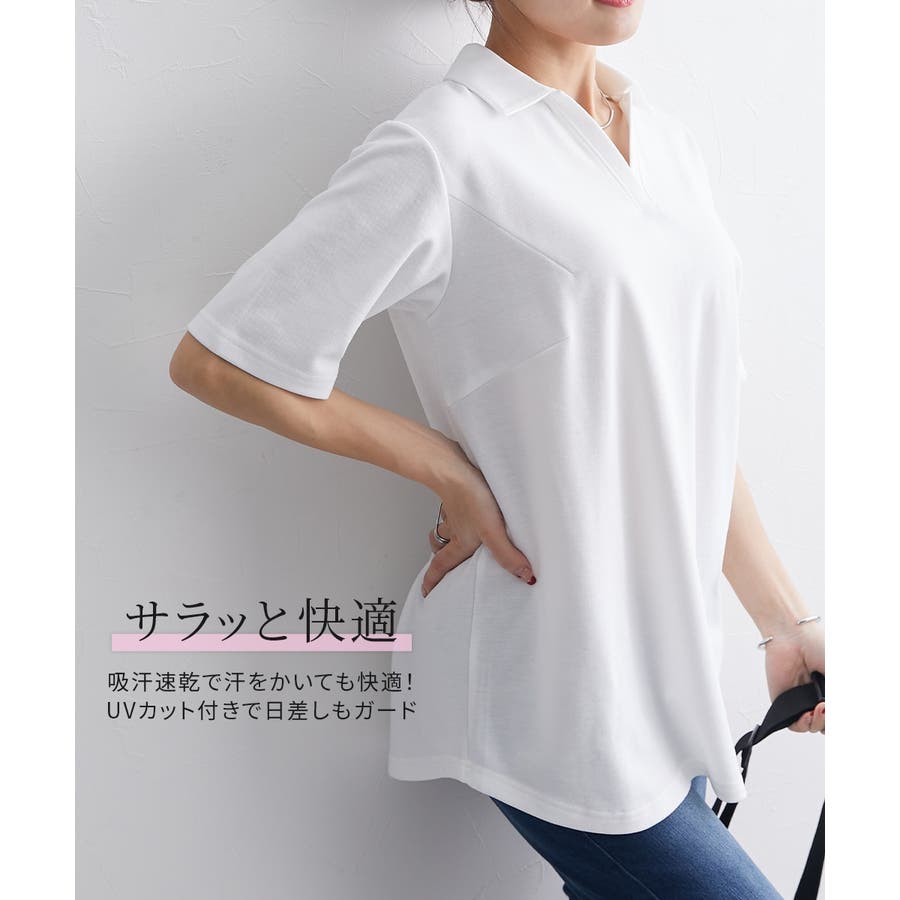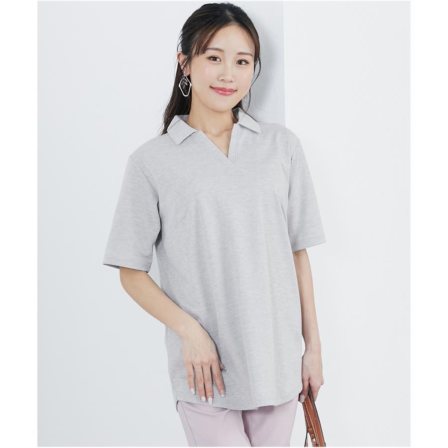 (FM-F3L)【大きい胸専用】吸汗速乾・UVカットスキッパー襟ポロチュニック