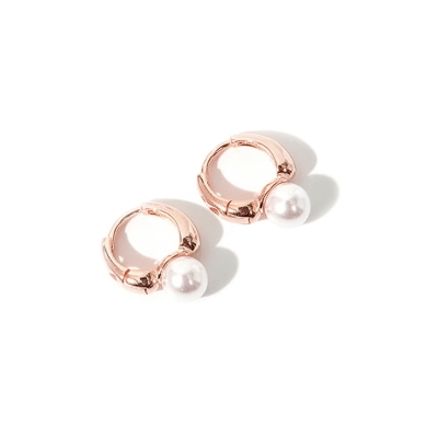 【シャンパンゴールド】ピアス 金属アレルギー対応 つけっぱなし パール フープ 18k 小さめ
