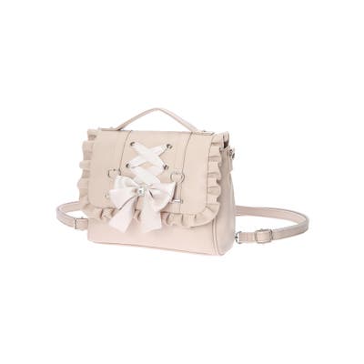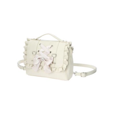 レースアップやフリルの縁取りで愛らしさたっぷりに仕上げたリュック。