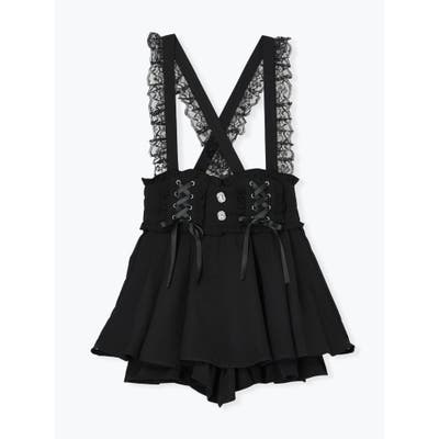 サスペンダーにはレースが付いているので、華やかな印象をプラスします。
