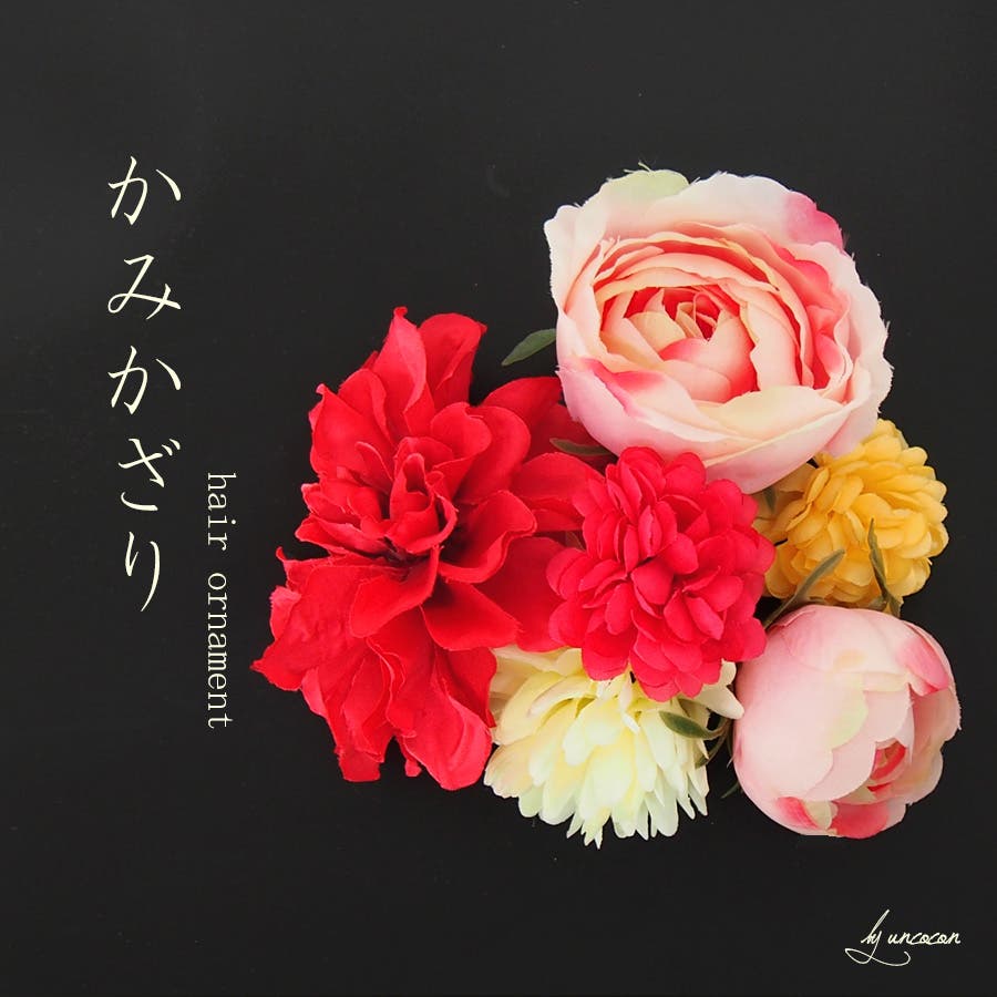 | 花の部分 (大) 約:横15cm×縦16cm(コーム部分除く) (小) 約:横5cm×縦5cm(コーム部分除く) ピンサイズ(大) 約:7cm (小) 約:5cm 取付部分:Uピン ※商品によって、サイズが若干前後します。 |