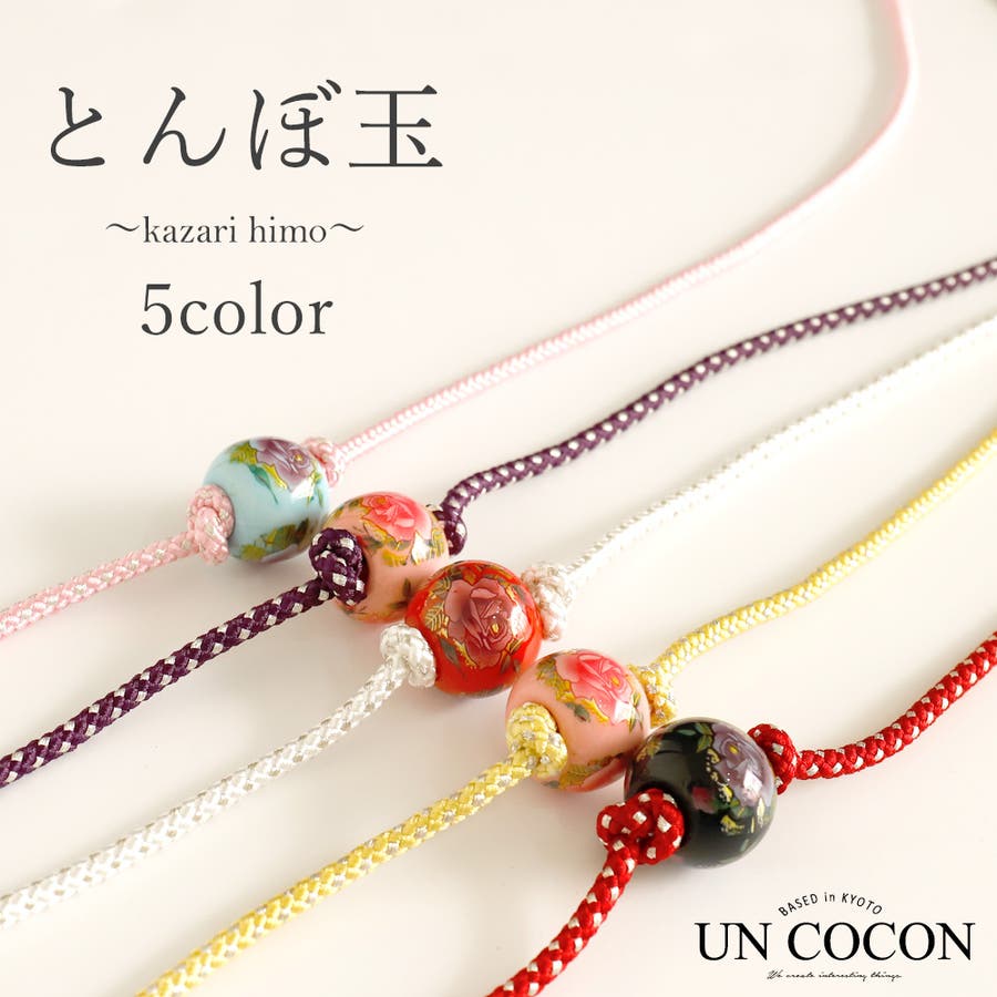 | 紐:ポリエステル100% トンボ玉:ガラス、金属部分:真鍮 |