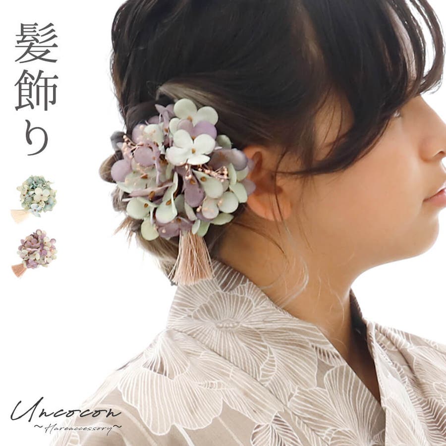 | 紫陽花をモチーフにした、浴衣用髪飾り。 どんな浴衣にも合わせやすいトレンドカラー2色をご用意。 髪飾りを付けるだけで浴衣の雰囲気をグッと高められます。 挟むだけでつけられるクリップ付き。 髪飾りとしてだけでなく、帯やバッグに付けたり、コサージュとしてもご利用頂けます。 他の髪飾りと組み合わせて使用してもボリュームが出て可愛いです。 程よい大きさでお子様にもおすすめ◎ |