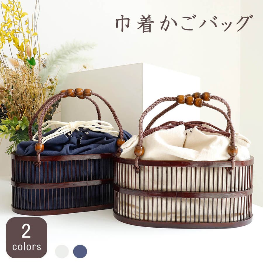 | かご:竹 巾着:麻100% |