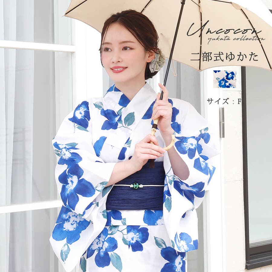 商品番号 u08736 お問い合わせはこちらの番号でお願いします。 ●浴衣のみの商品です。その他の小物は付属しません。 着付けをしなくてもいいので、1人でも簡単に着用していただけます。 上下が別々になっており、下は巻きスカート状なのでサイズの幅も大きく 着崩れしにくいセパレート式の浴衣です。 お洋服感覚で気軽に浴衣をお楽しみいただけます。 ほどよい厚みの生地でシャッキリとした 肌触りが特徴の綿100%生地を使用しております。 ※涼しさを保つため、生地は適度に薄く透け感があります。 ゆかた下スリップ等のインナーの着用をおすすめします。 ※浴衣の柄部分は大きな生地を裁断して縫製しております。 柄の出方、模様の配置等が画像と異なる場合がございます。 ●こちらの商品は浴衣単品ページとなりますのでご確認の上ご購入下さい。 |