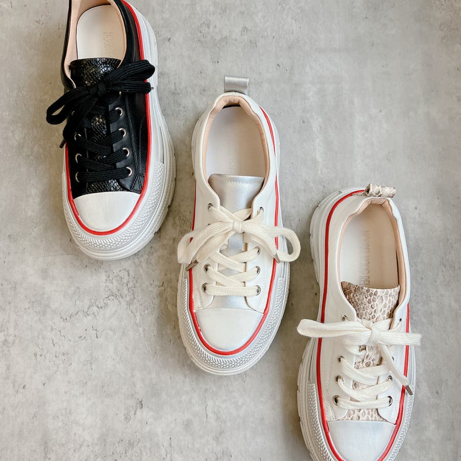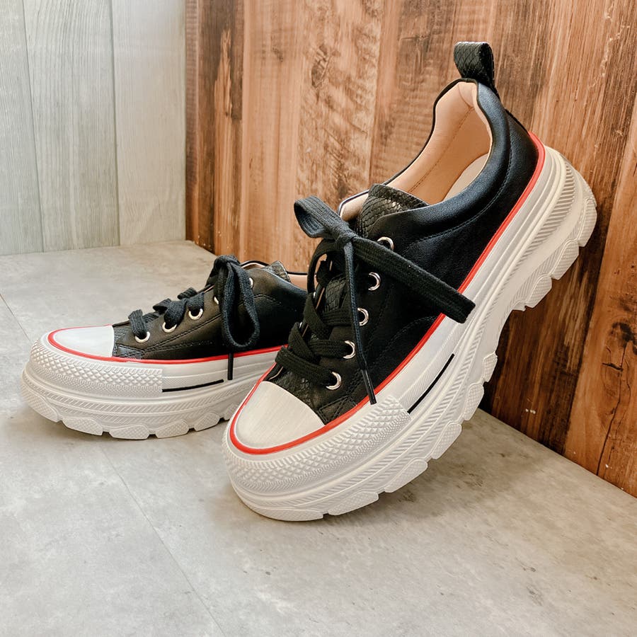 定番のアイテムでありながら、トレンドのトラックソール×厚底ソールで軽やかでスタイリッシュに印象に♪