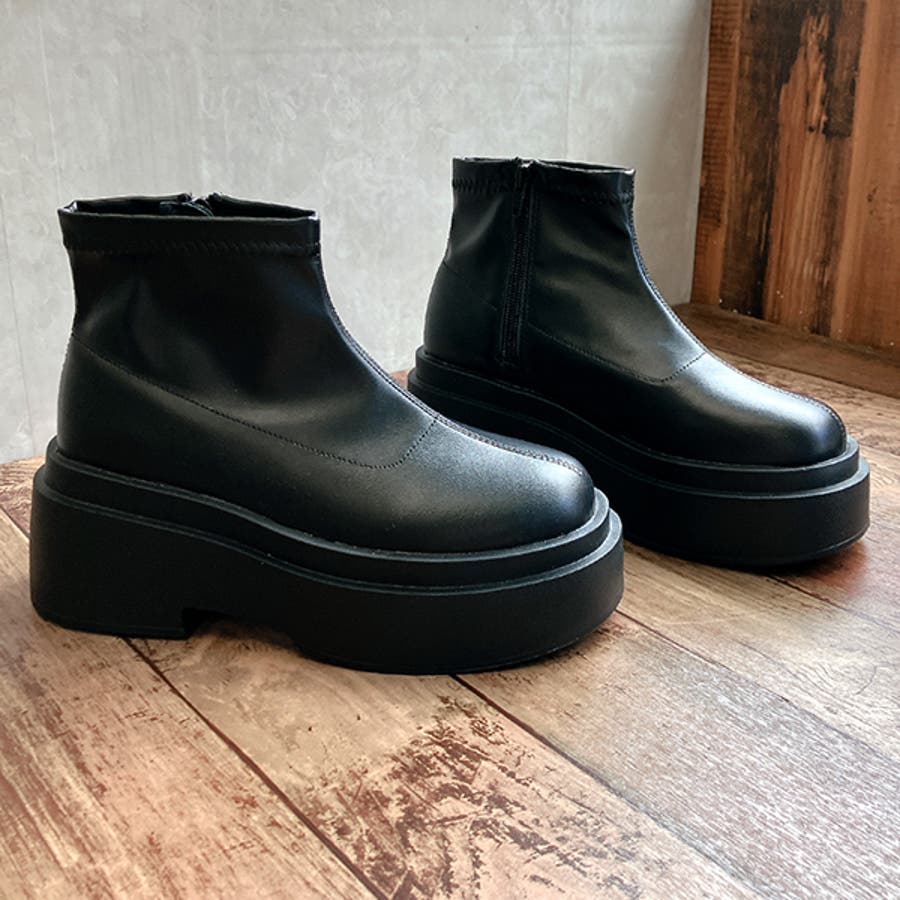 厚底 サイドファスナー ダブルソールショートブーツ