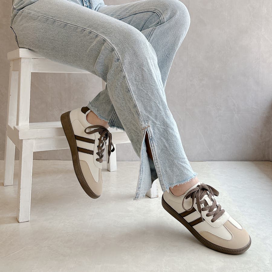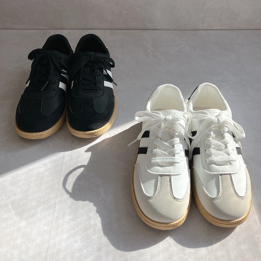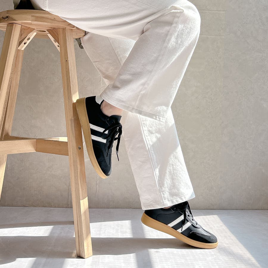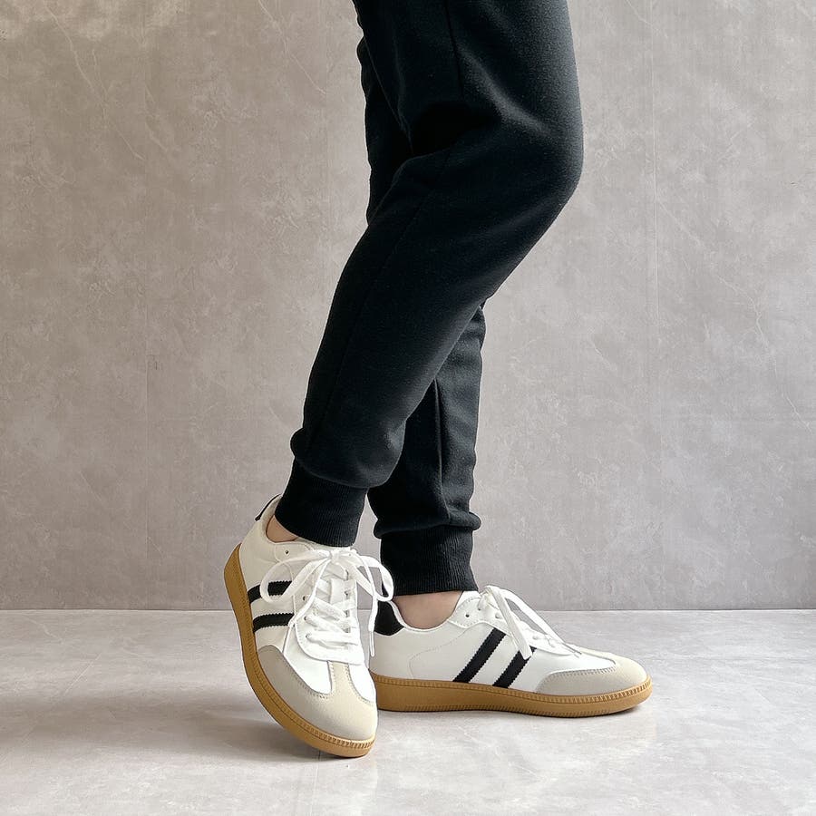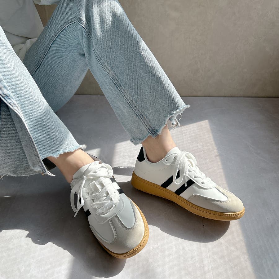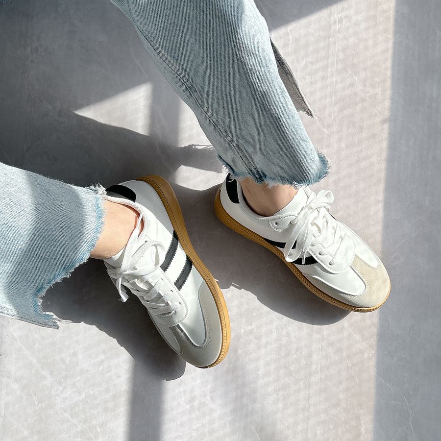 シンプルデザインで、キレイめスタイルにもマッチするローテクスニーカーは今年のマストバイアイテム!