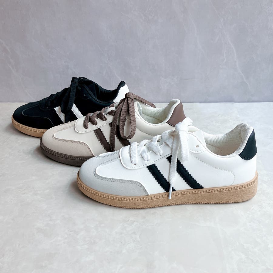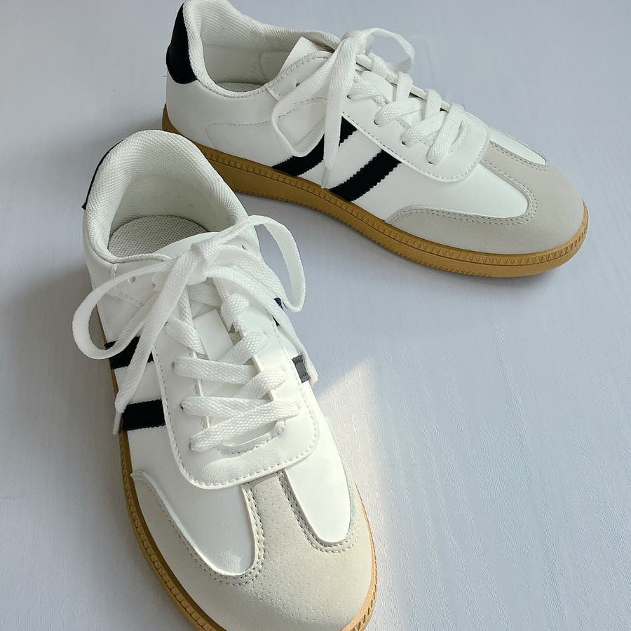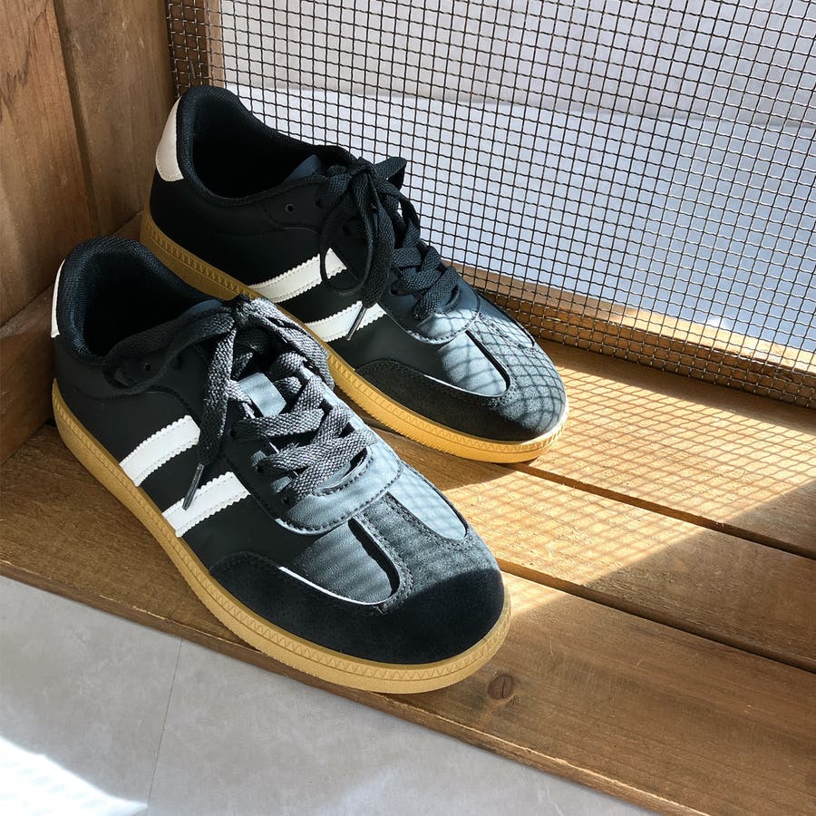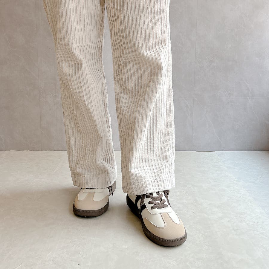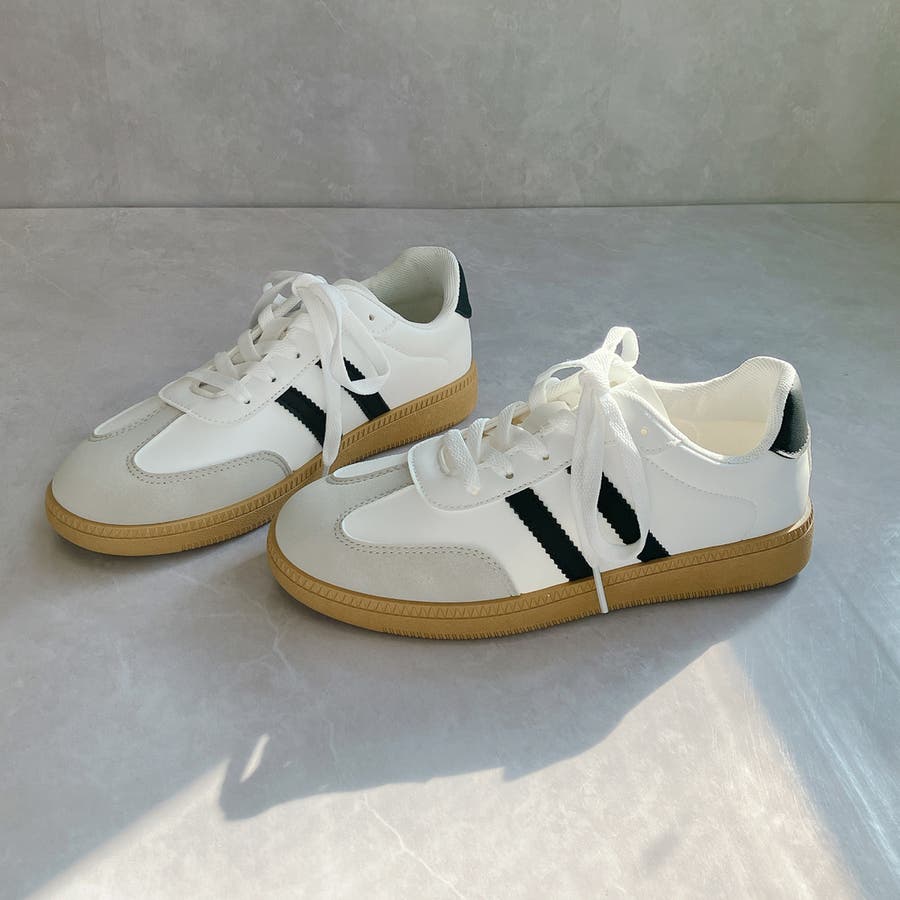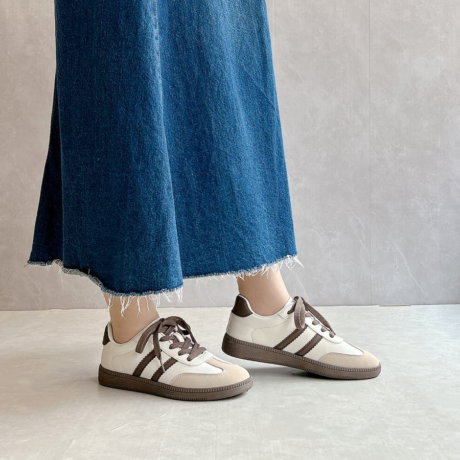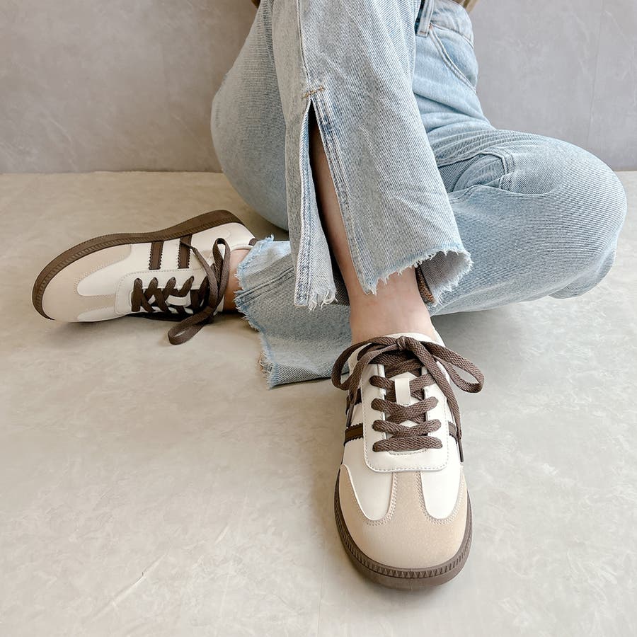シンプルデザインで、キレイめスタイルにもマッチするローテクスニーカーは今年のマストバイアイテム!