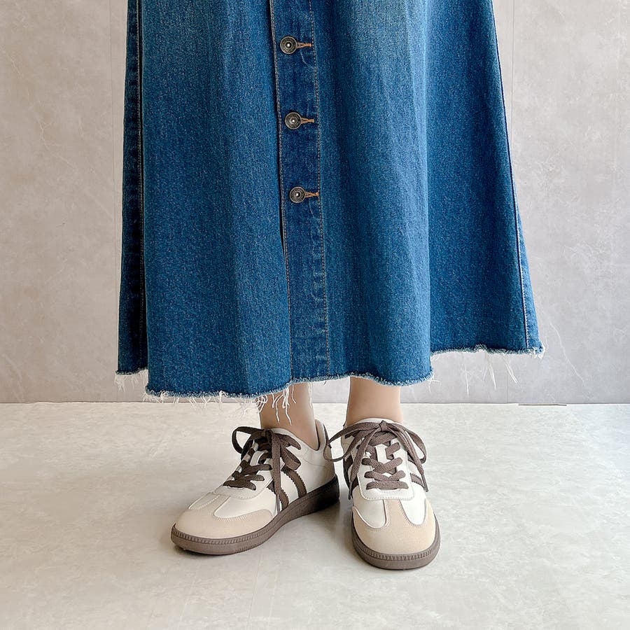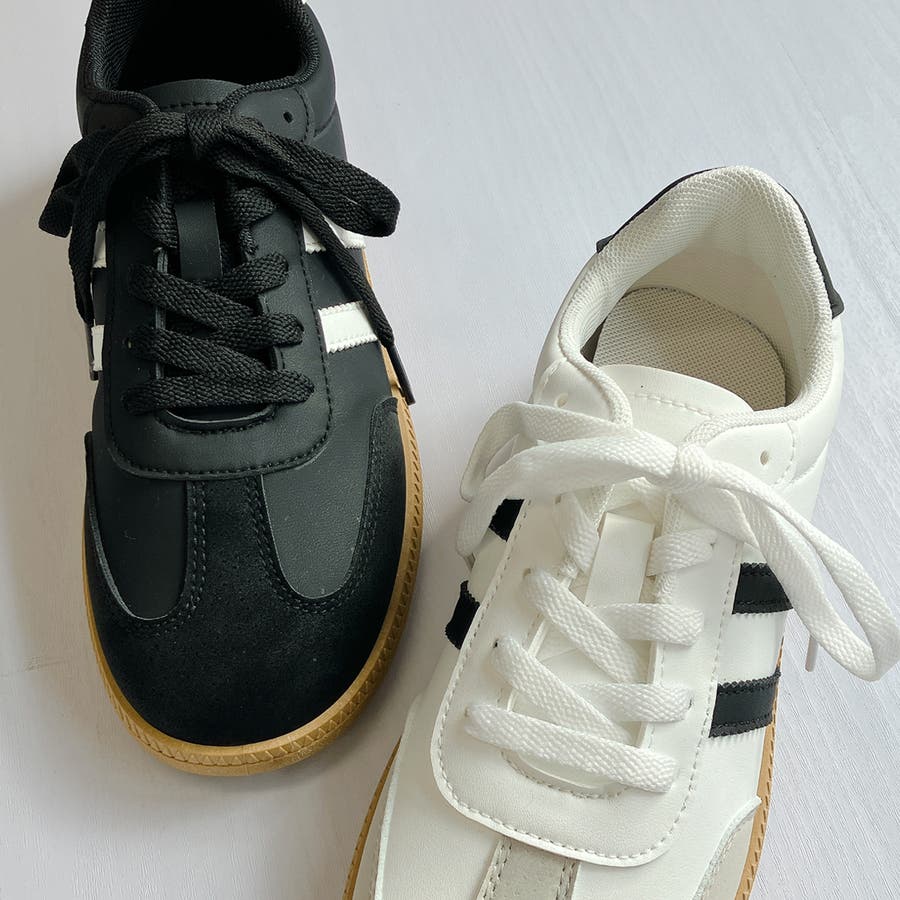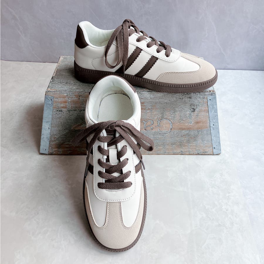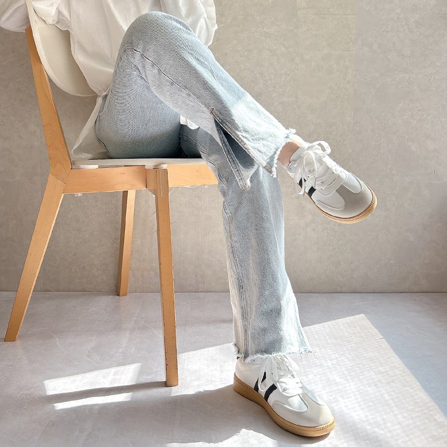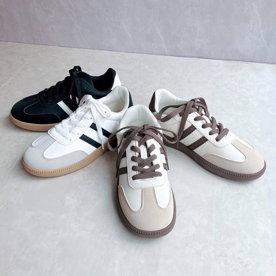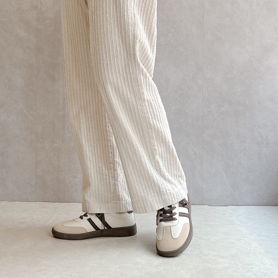 シンプルデザインで、キレイめスタイルにもマッチするローテクスニーカーは今年のマストバイアイテム!