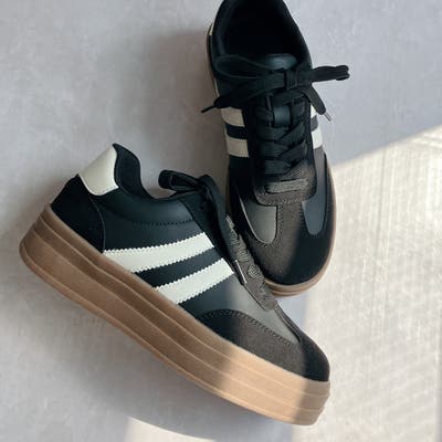 異素材コンビ ダブルライン プラットフォームスニーカー