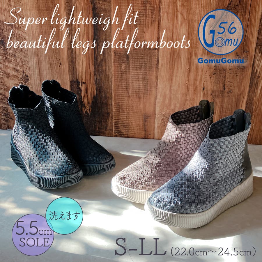 Gomu56 洗える 超軽量 伸び伸び フィッ ト美脚 厚底 ブーツ