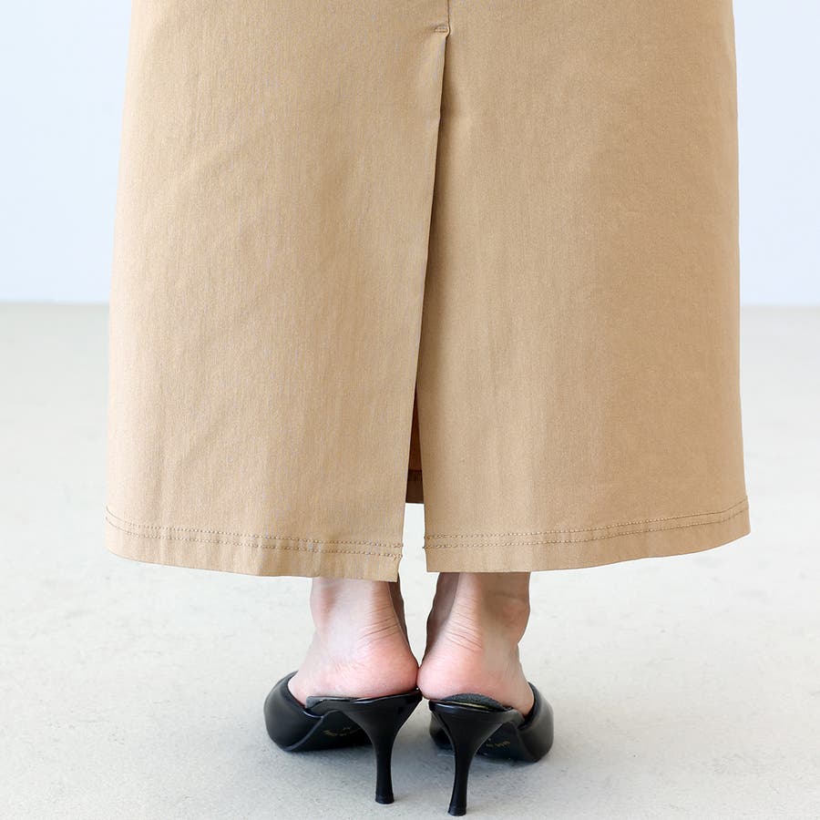 〈M〉総丈90,ウエスト周66~82,ヒップ周92,スリット深さ32,裾幅47,ベルト幅4.0〈L〉総丈92,ウエスト周70~86,ヒップ周98,スリット深さ32,裾幅50,ベルト幅4.0/420g
