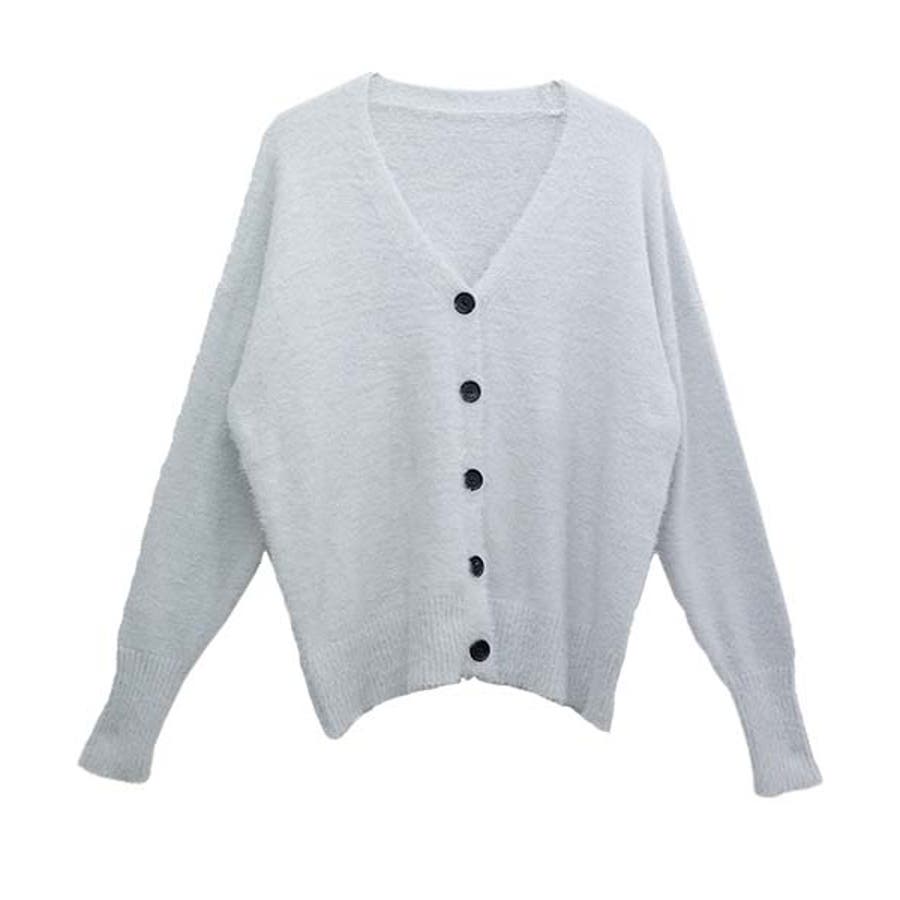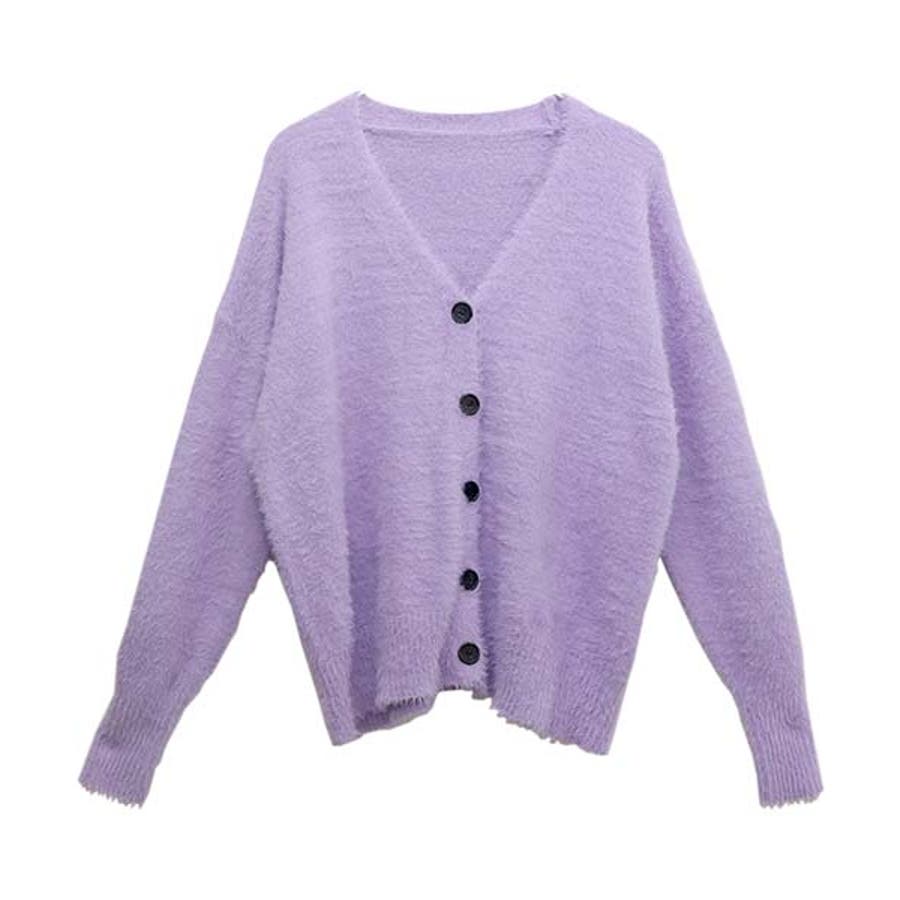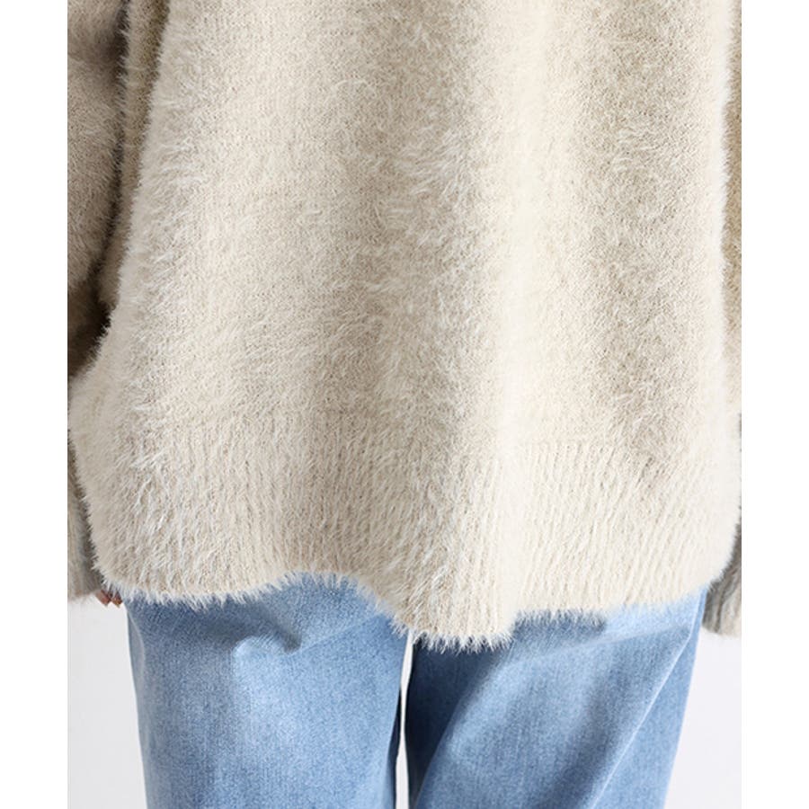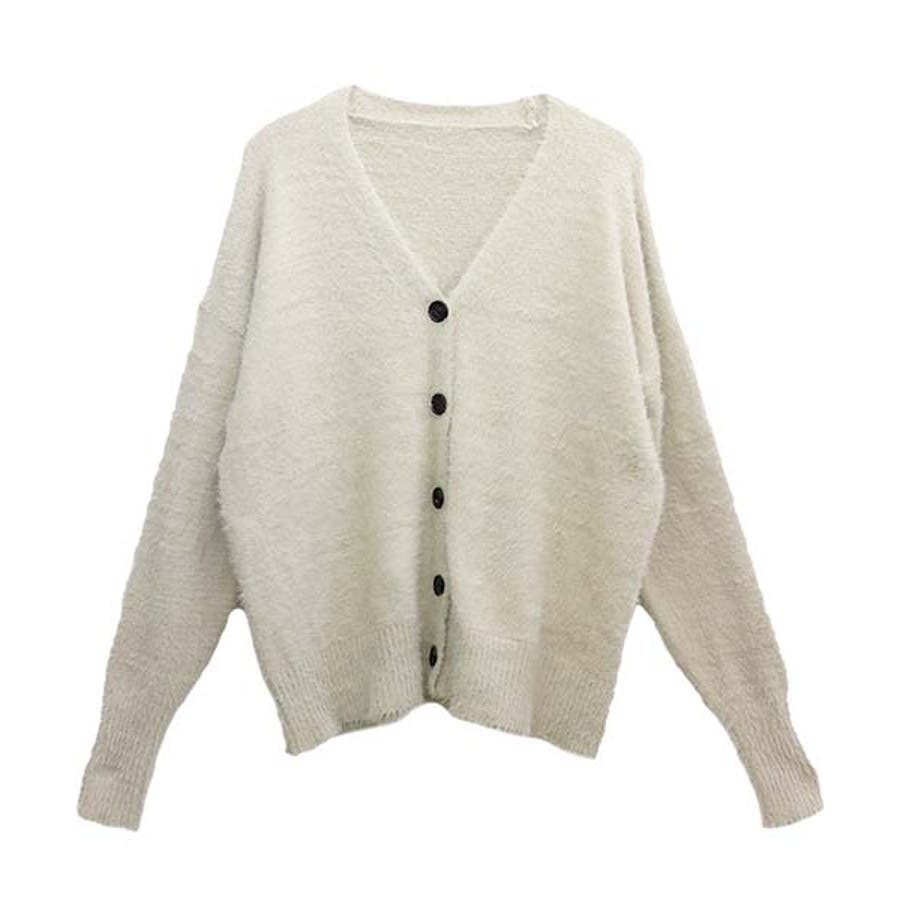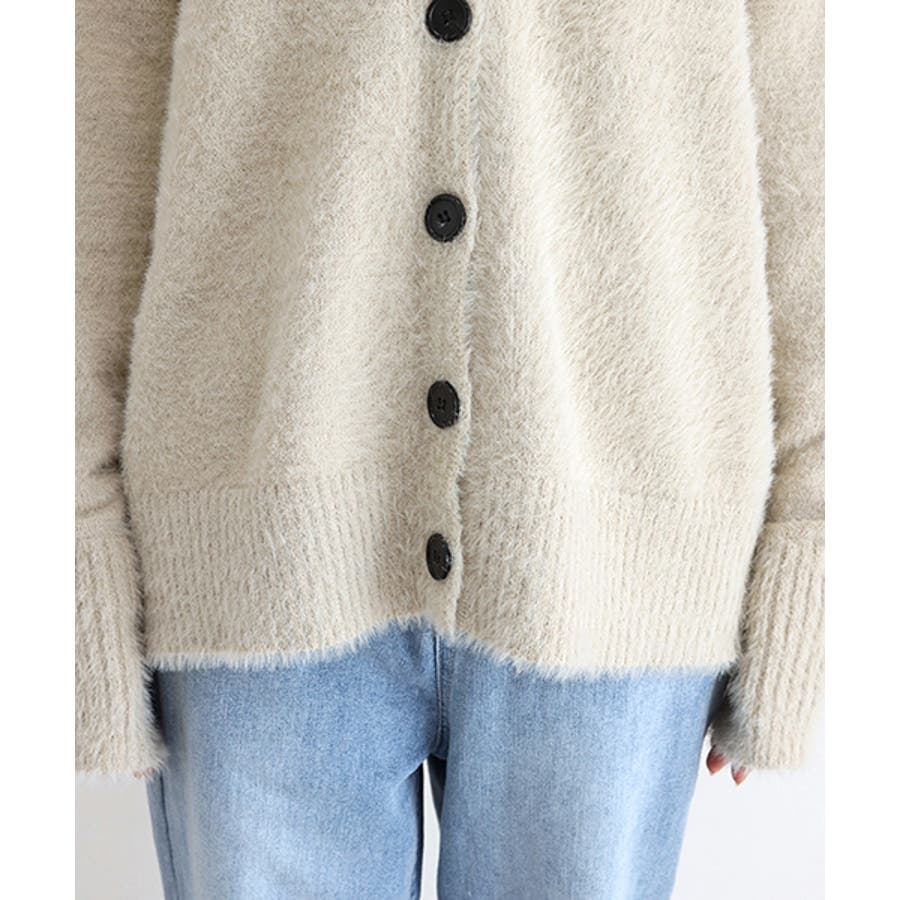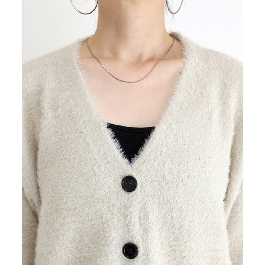 Vネックシャギーニットカーディガン