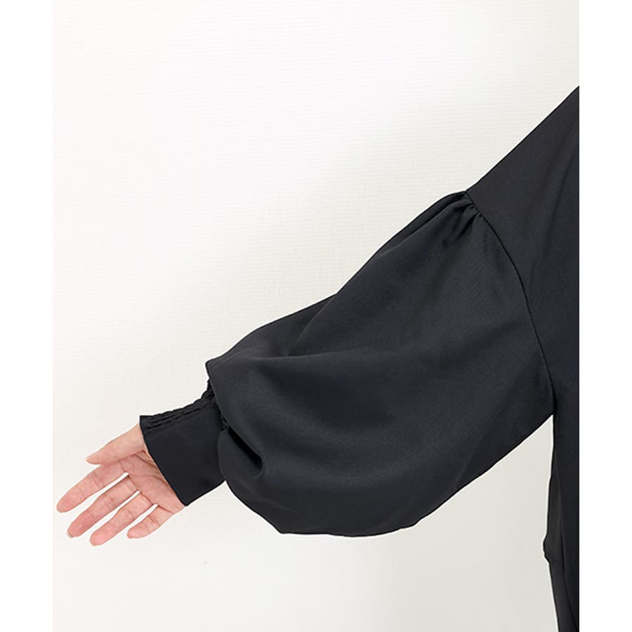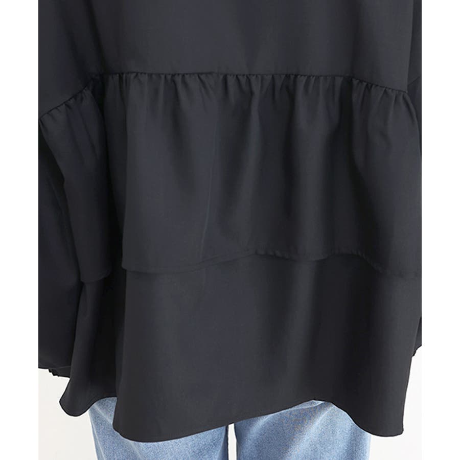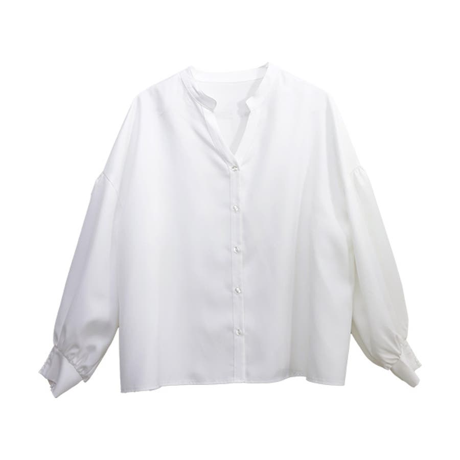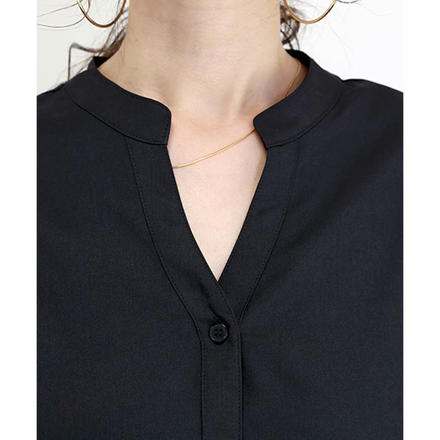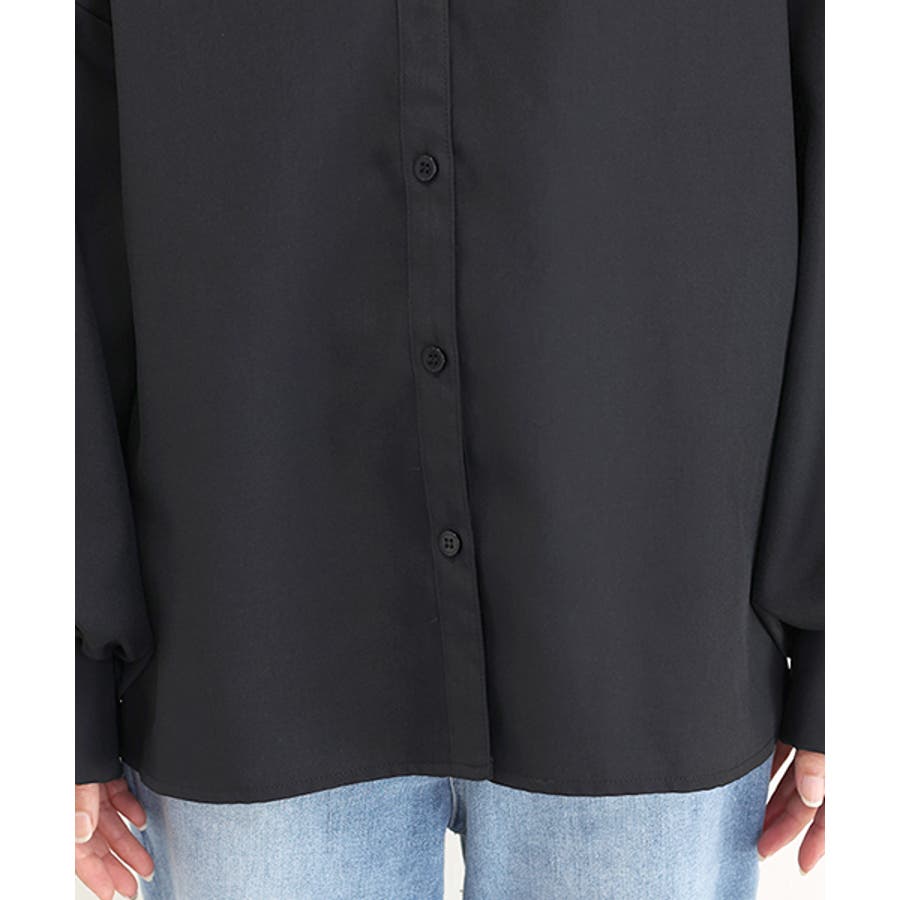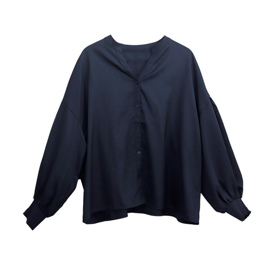 バックについているフリルの重さもあって抜襟のスタイルが自然にできるので、自分で後ろに引っ張る必要がなくきれいに着こなせます。袖の部分が少しゴムになっている為、自分が捲りたい位置できれいに止まってくれます。今の季節にちょうどいい厚みの生地なので、一枚できるのはもちろん中にキャミを着てアウターでもいいし、もう少し寒くなったら上からカーディガンを着たりとこの先もしばらく楽しめそうです。