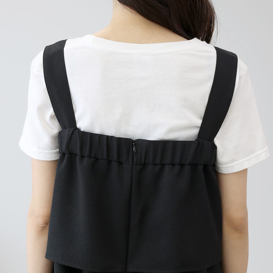 総丈(肩紐含まず)113,股下66,前股上(胸元ゴム上~)51,後股上(胸元ゴム上~)59,身幅42~49,ビスチェ丈22,肩紐長さ24~70,太腿幅42,ヒップ周124,ファスナー長さ22,裾幅41/530g