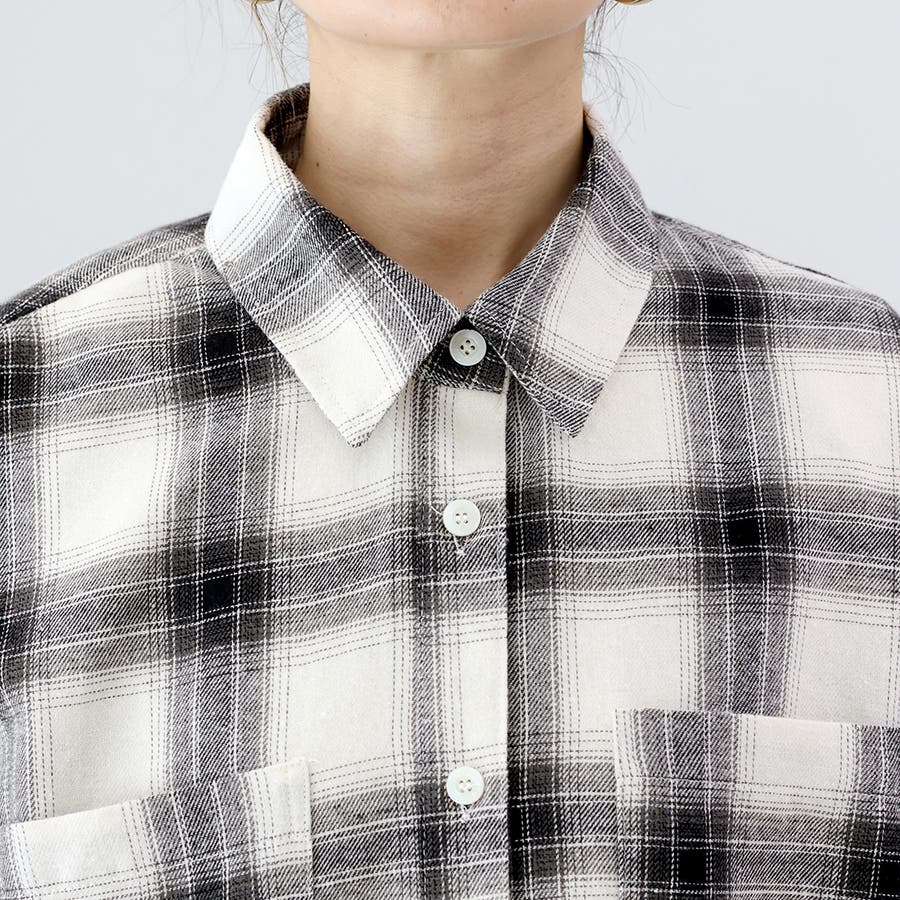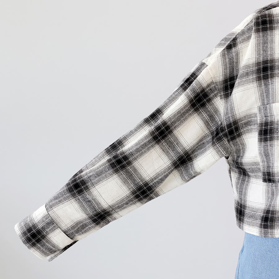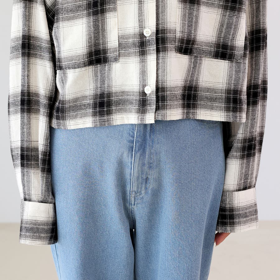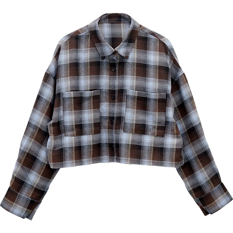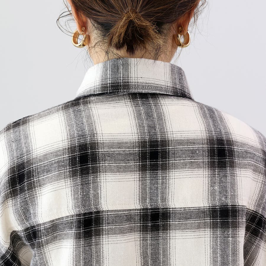 旬ムード漂う落ち着いた配色のチェック柄が大人の雰囲気、トレンド問わずで着回せるチェック柄シャツ。レギュラーカラー仕様で、きちんと感も程よくキープします。ワイドな身幅とドロップショルダーで、体型を自然にカバーしながらもリラックス感のある着心地。クロップド丈は脚長効果があり、ハイウエストボトムとの相性も抜群、羽織りとしてもバランスよく着られます。フロントの両ポケットがアクセントに。デニムやスカート、きれいめボトムまで幅広くコーディネートしやすい便利なアイテムです。