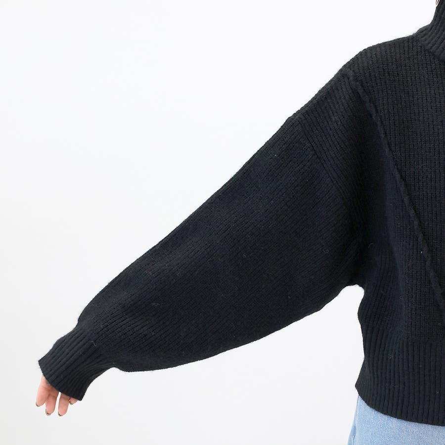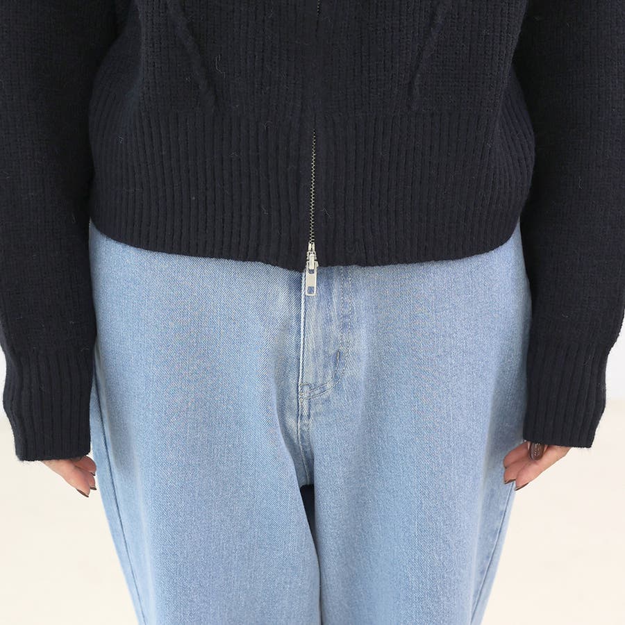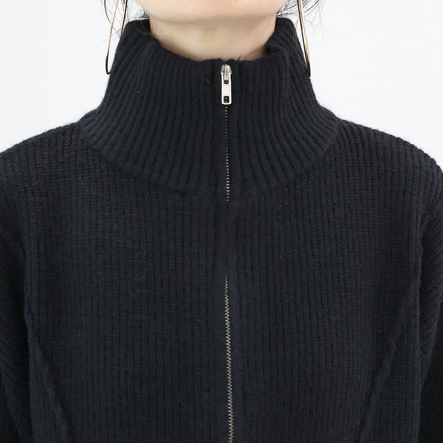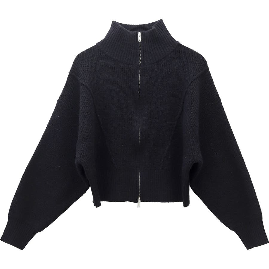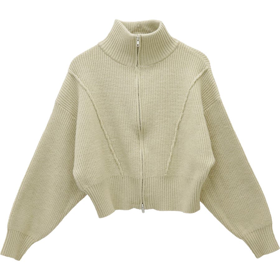 片畦編みハイネックダブルジップブルゾン