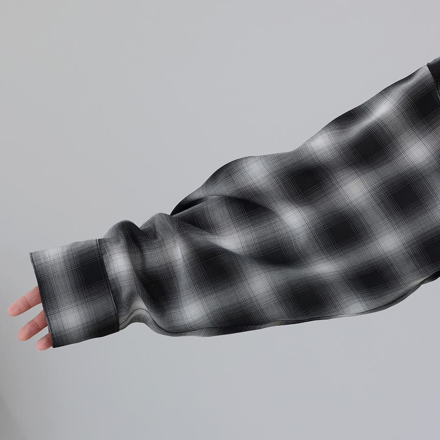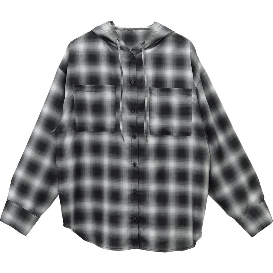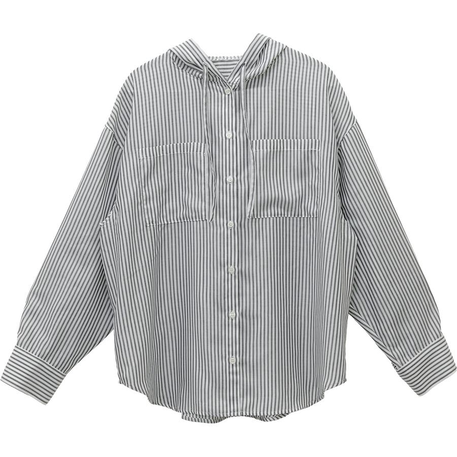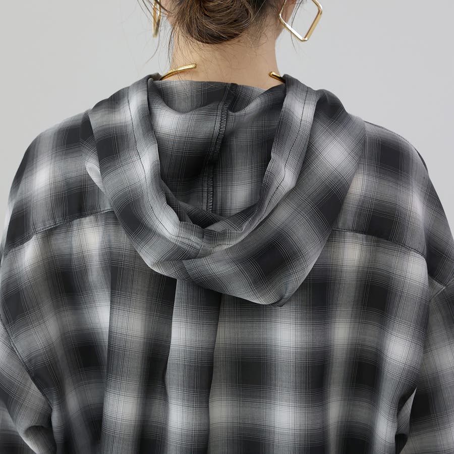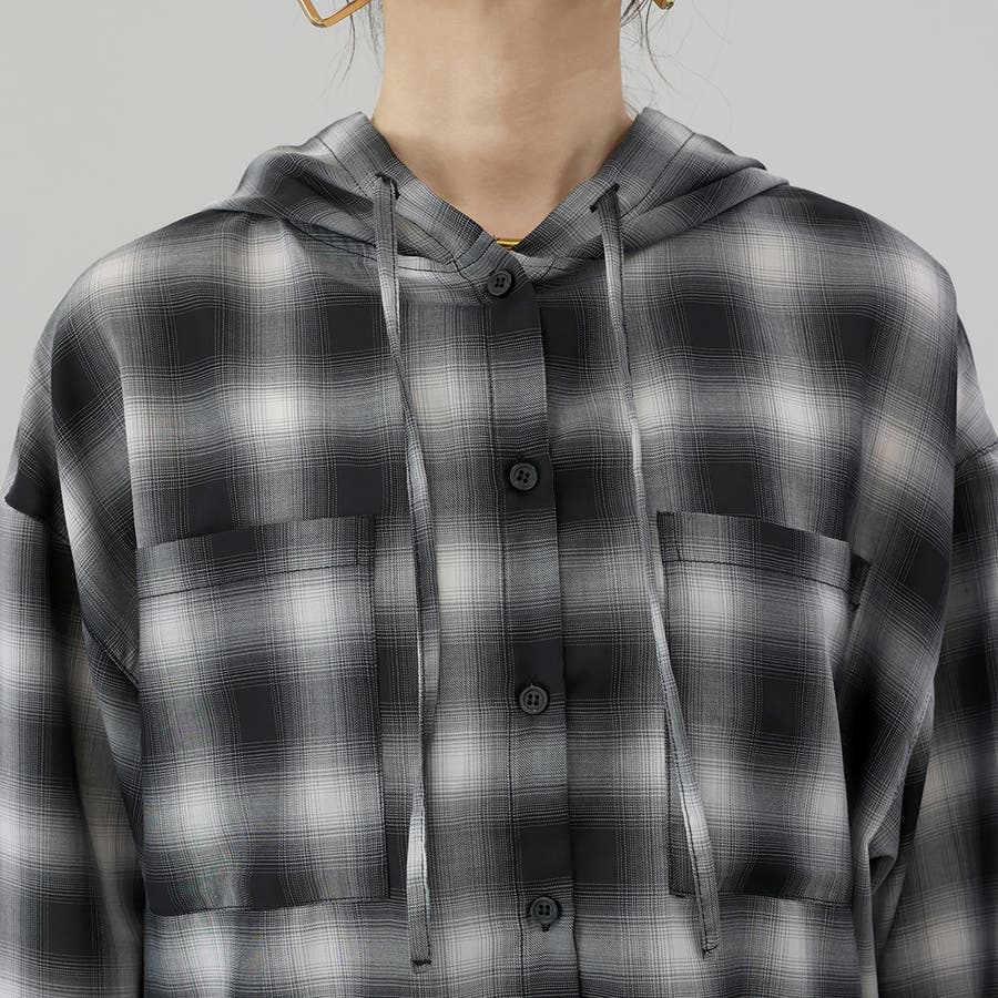 先染めプリントシアーフードシャツ