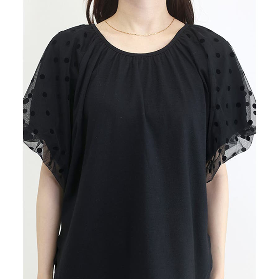 T/C天竺x袖チュールプルオーバー