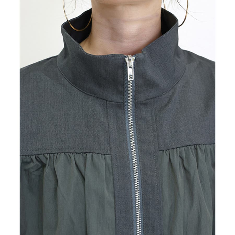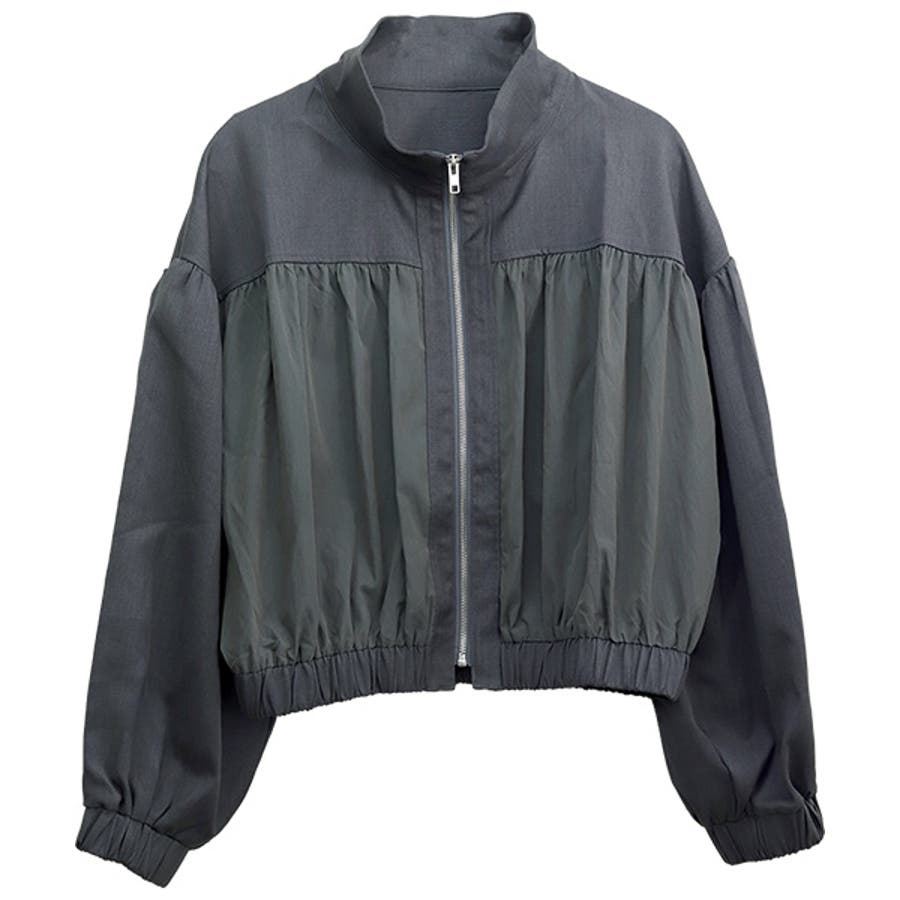 異素材使いギャザーブルゾン