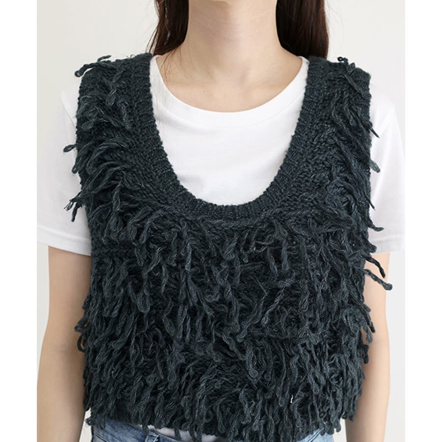 ループツイスト編みニットベスト