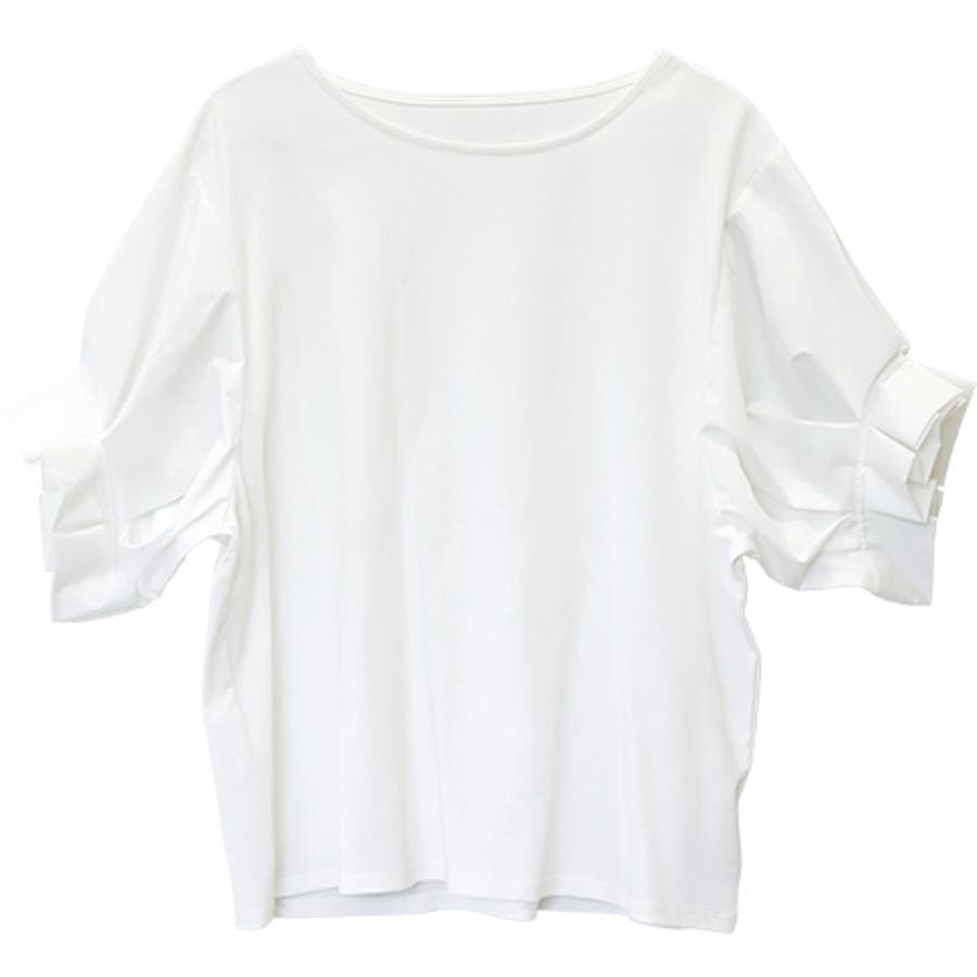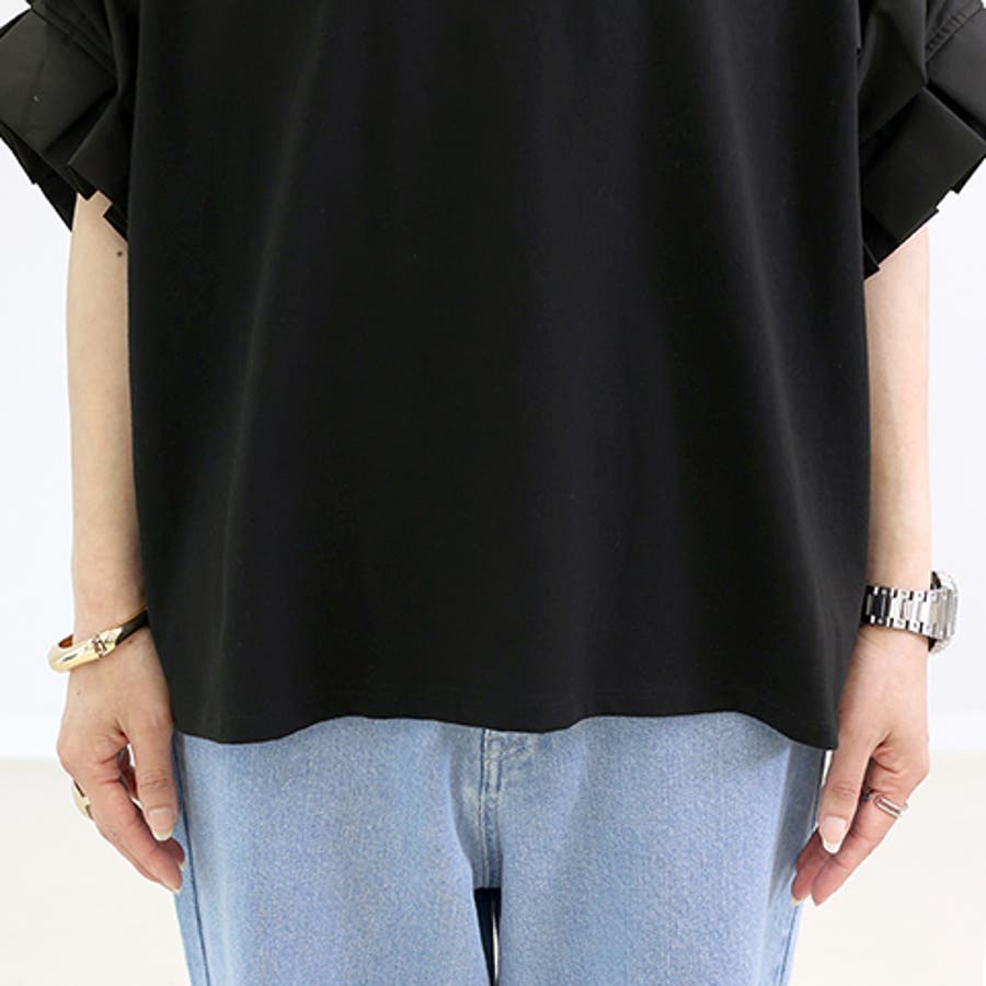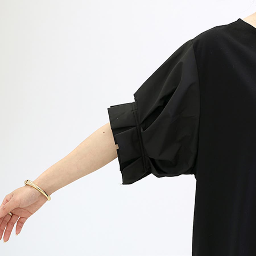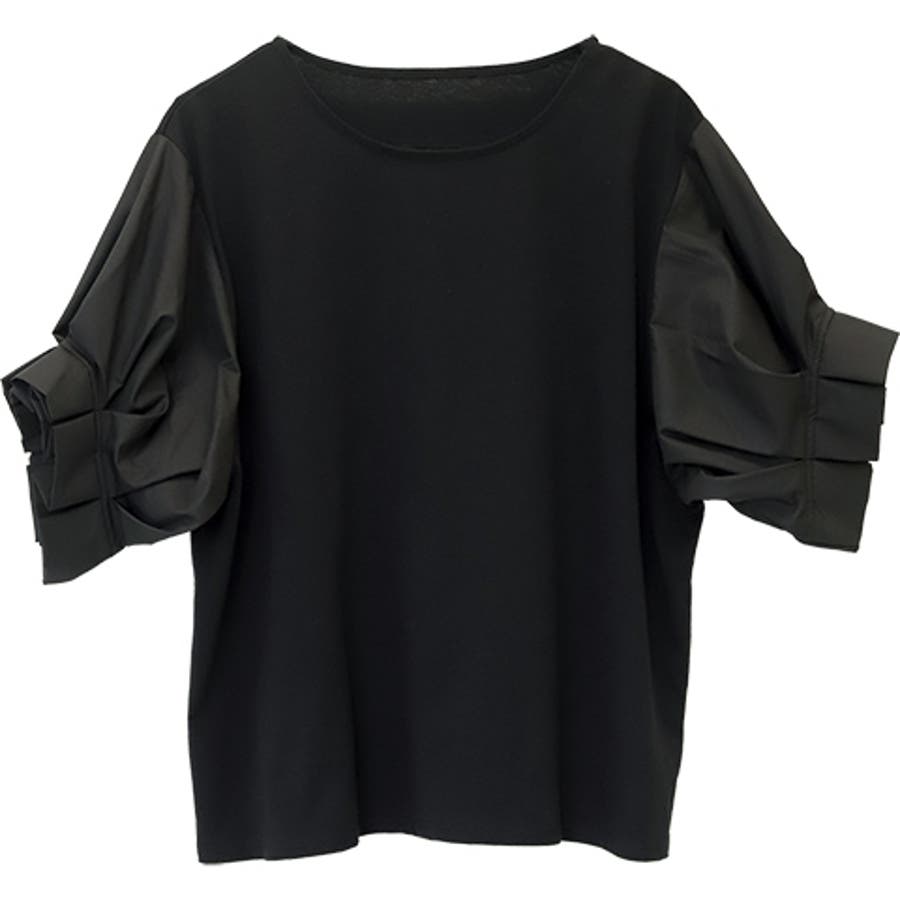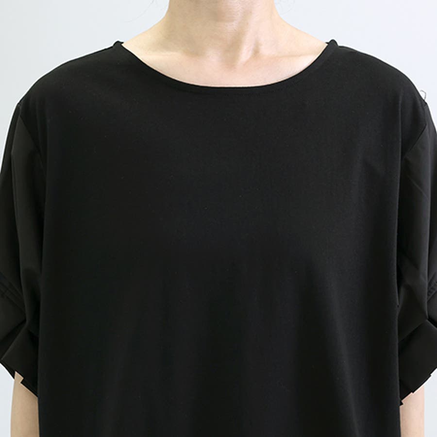異素材切替袖タックプルオーバー