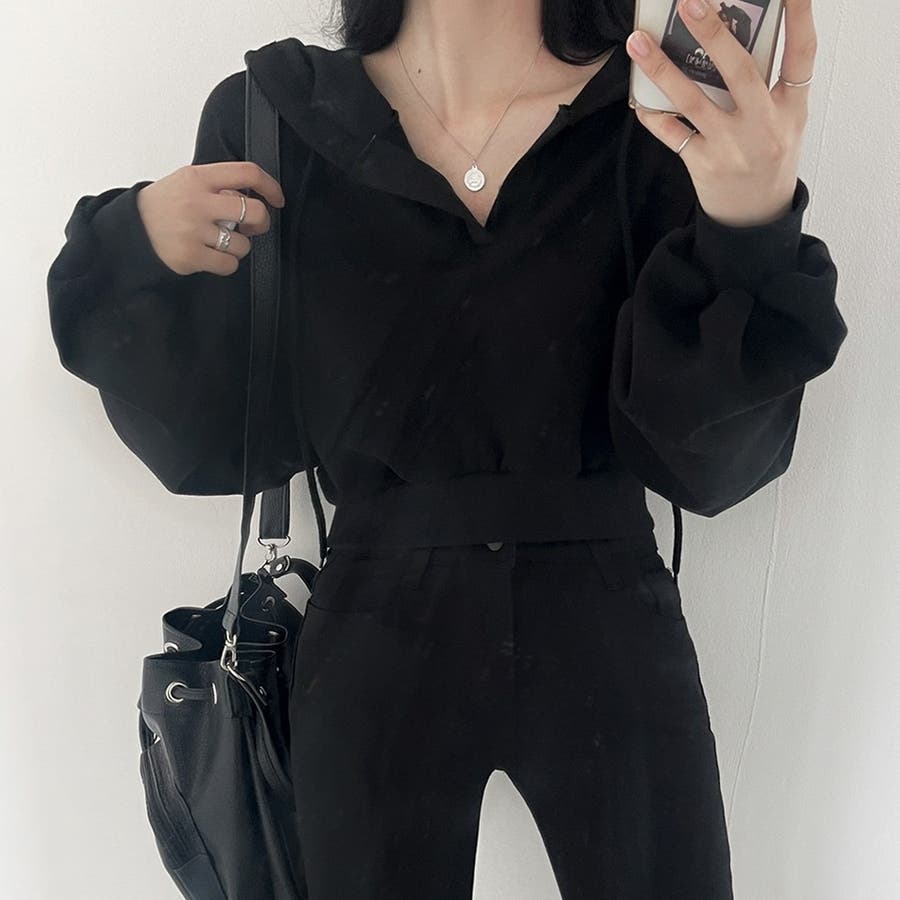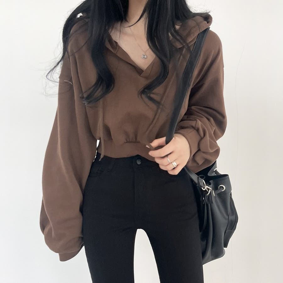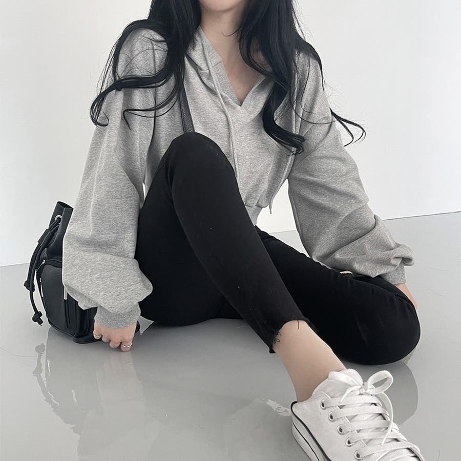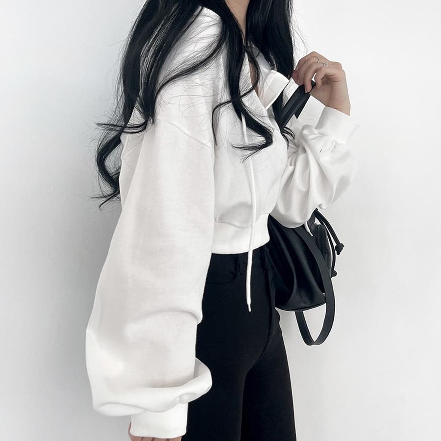 韓国 韓国ファッション トップス パーカー ショート丈 ショート丈トップス クロップ丈 クロップド丈 シンプル カジュアル ストリート 春 春服 春先