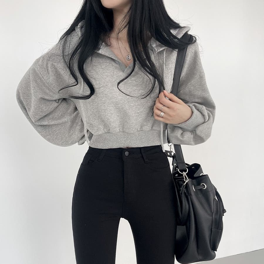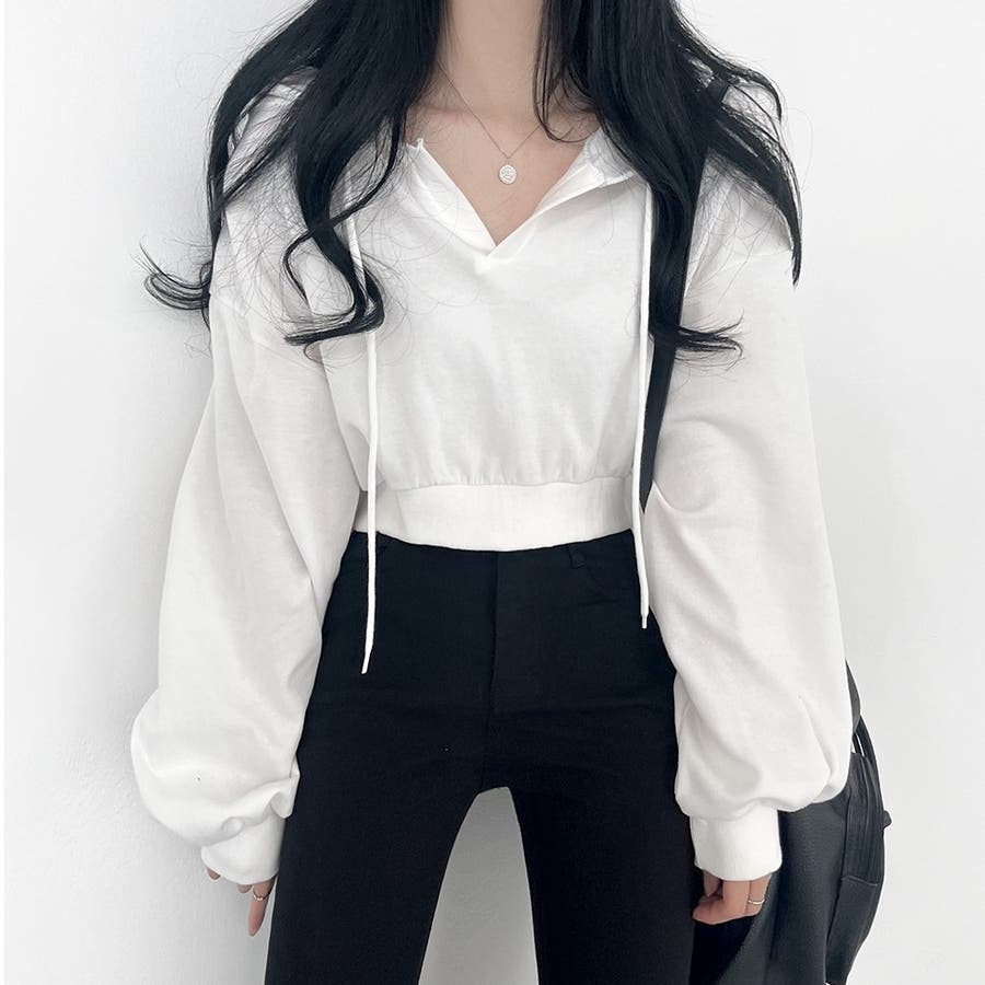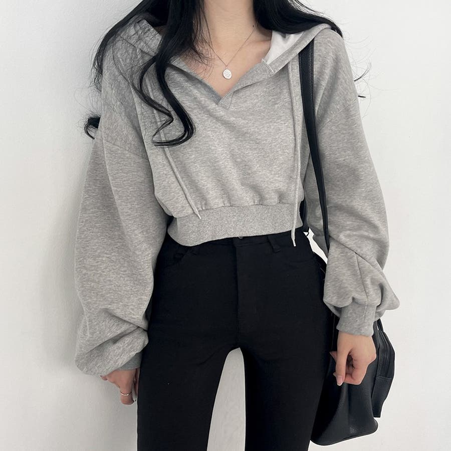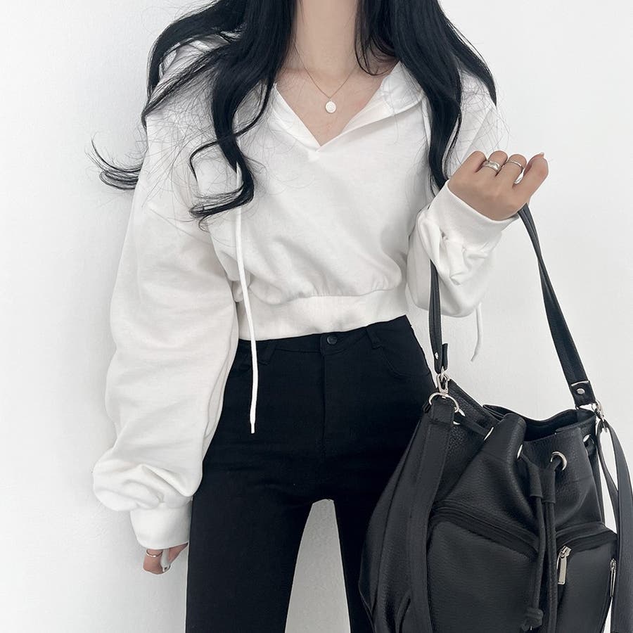 韓国 韓国ファッション トップス パーカー ショート丈 ショート丈トップス クロップ丈 クロップド丈 シンプル カジュアル ストリート 春 春服 春先