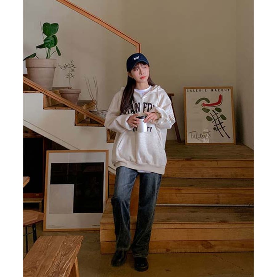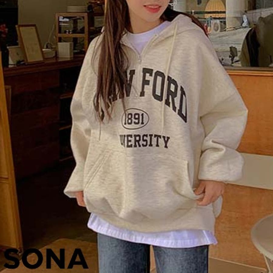 SONYUNARA英文プリント裏起毛ハーフジップアップパーカー 韓国