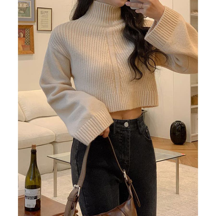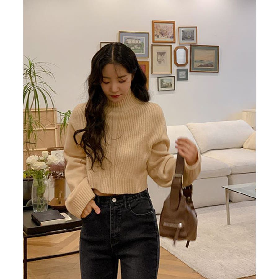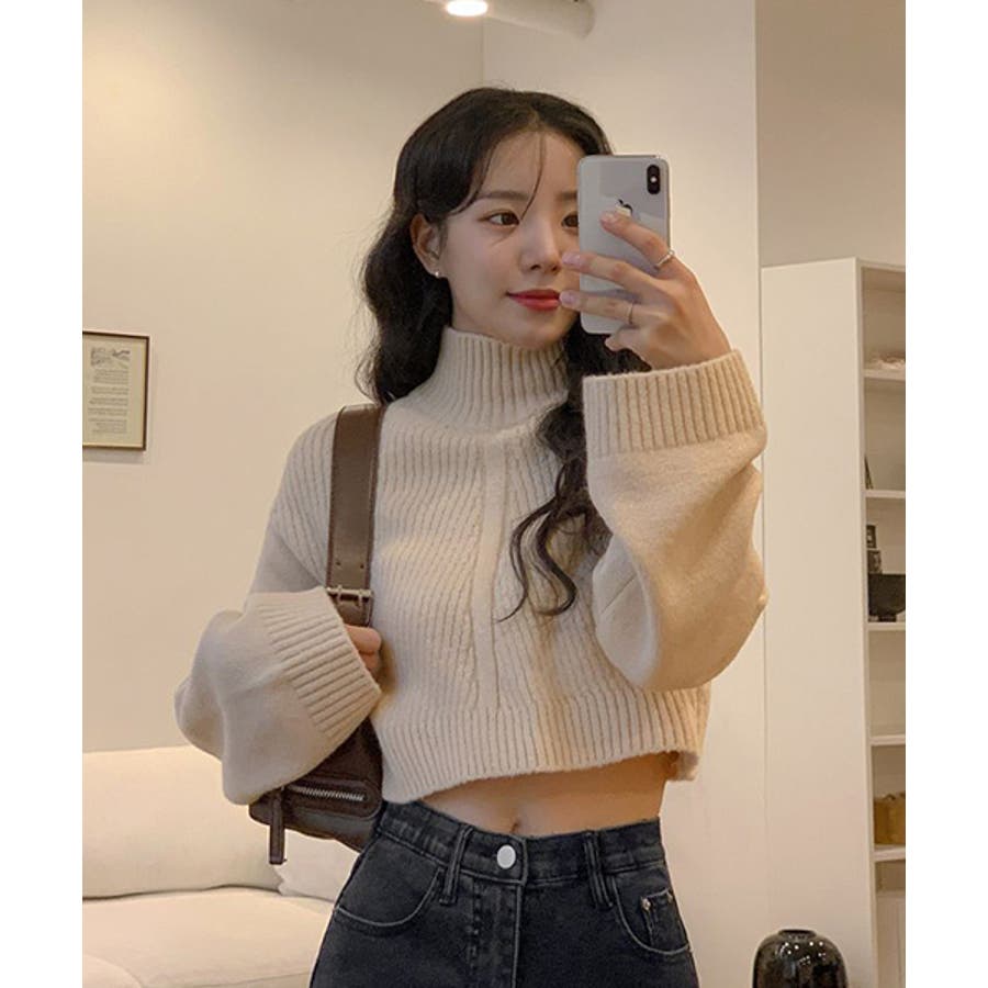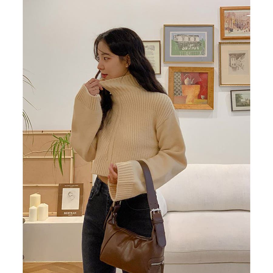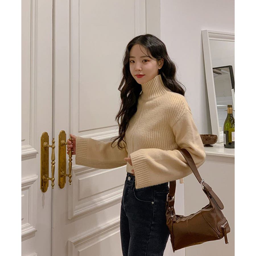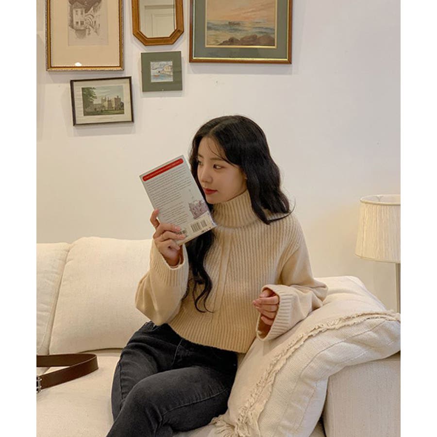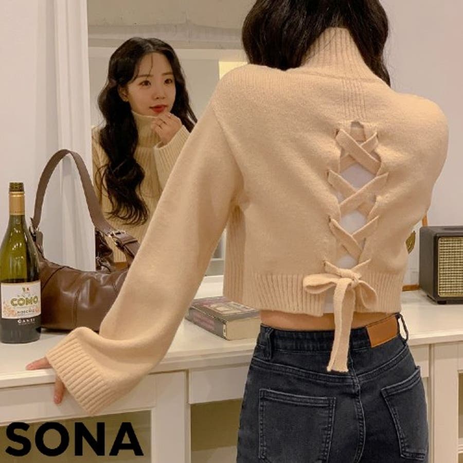 SONA(ソナ)バックレースアップリボンハイネックニット 韓国