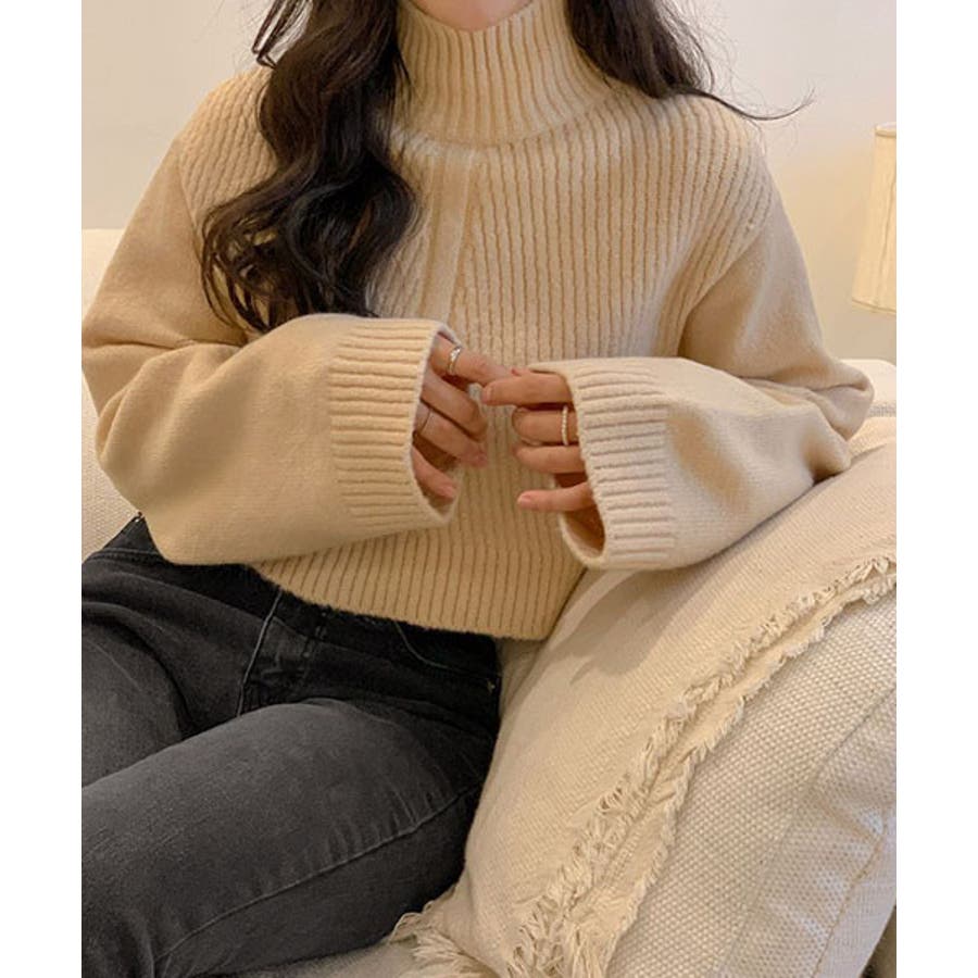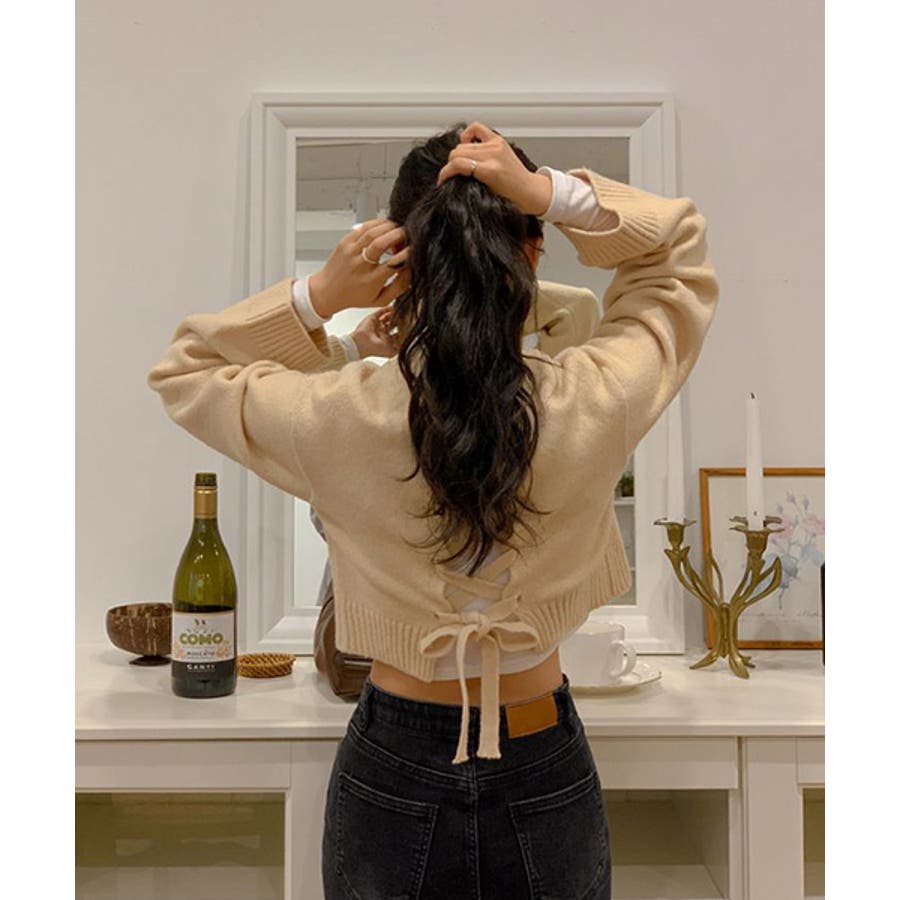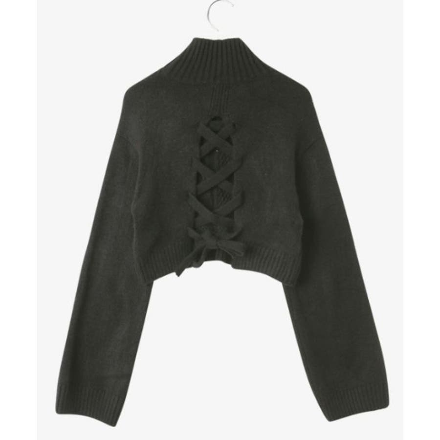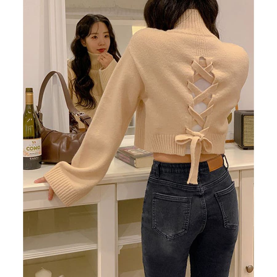韓国 韓国ファッション トップス バックレースアップ リボン ハイネック ニット 着回し 秋冬 秋 冬服 冬 春 春服