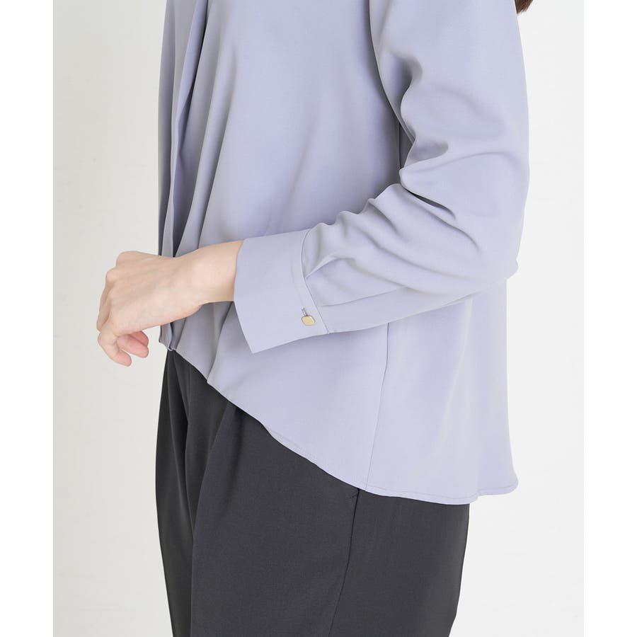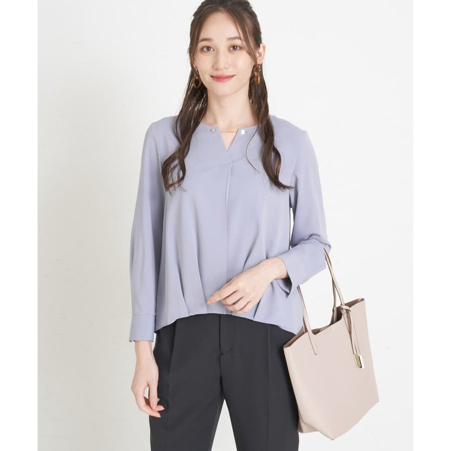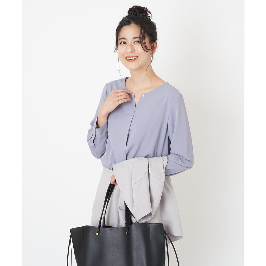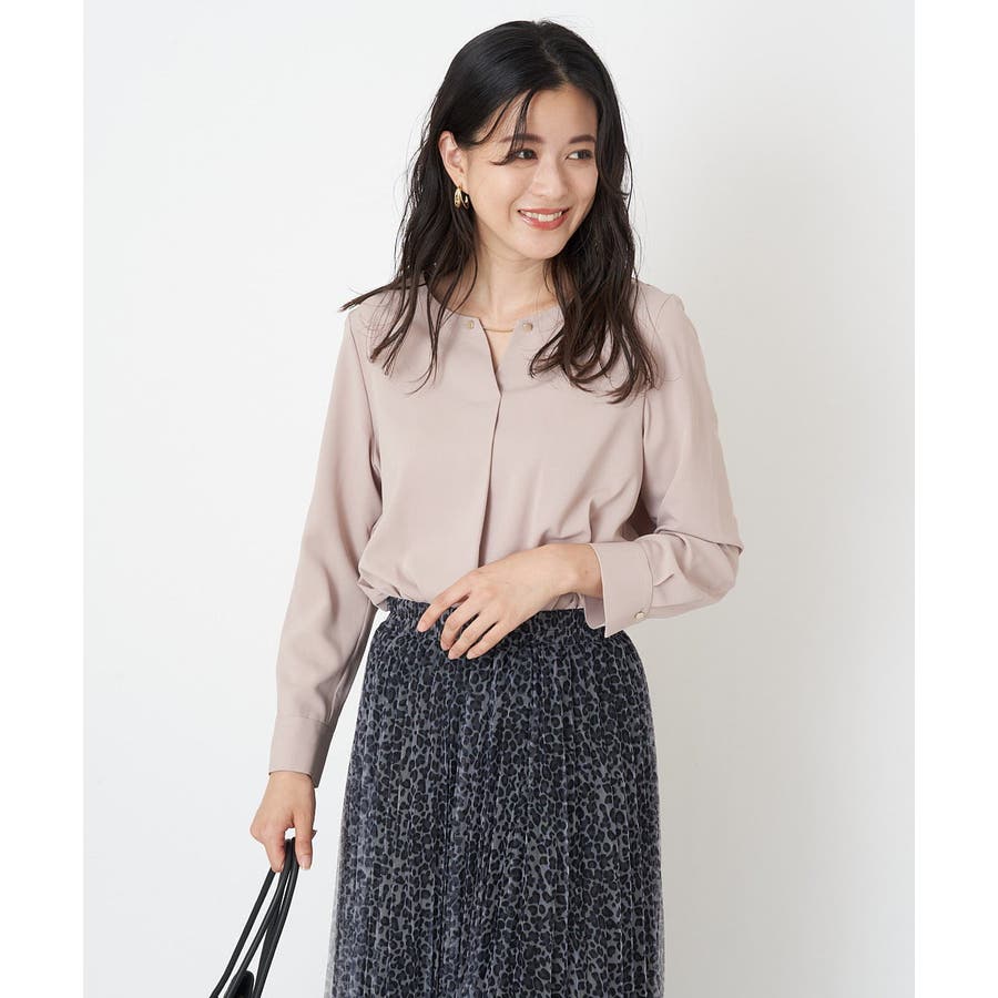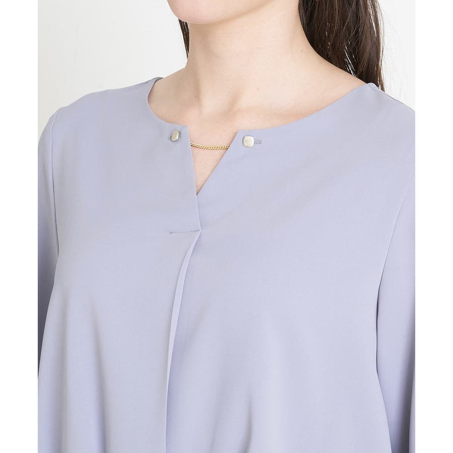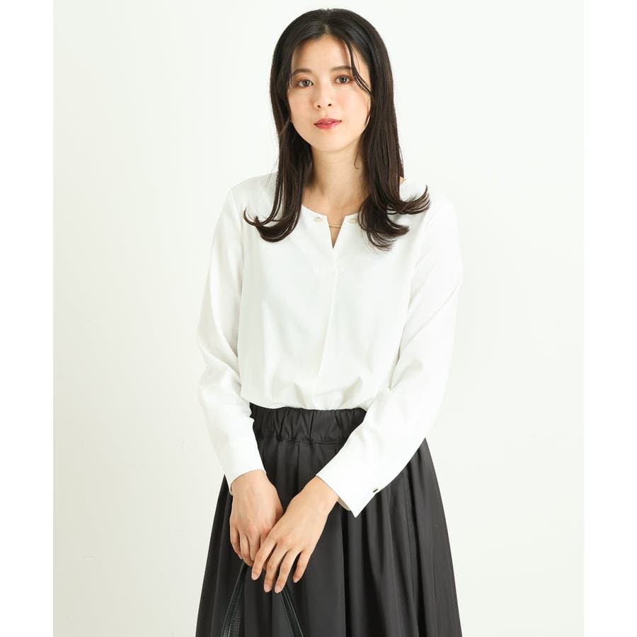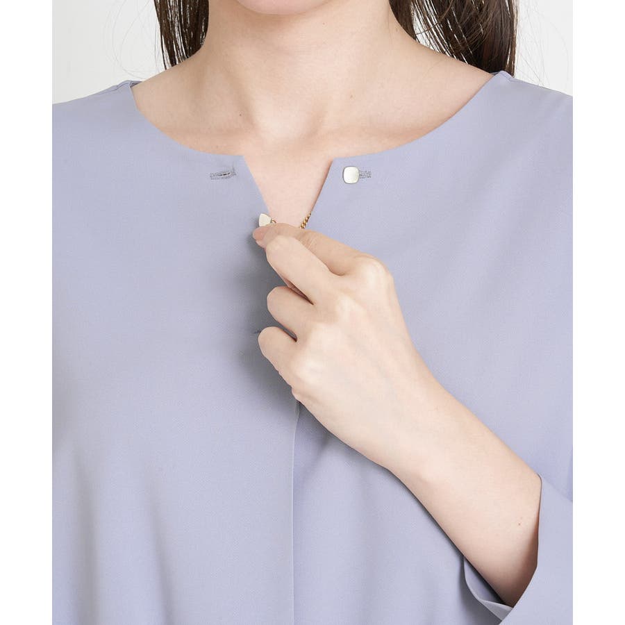 すっきりした襟周りに、チャームがポイントのブラウスです。