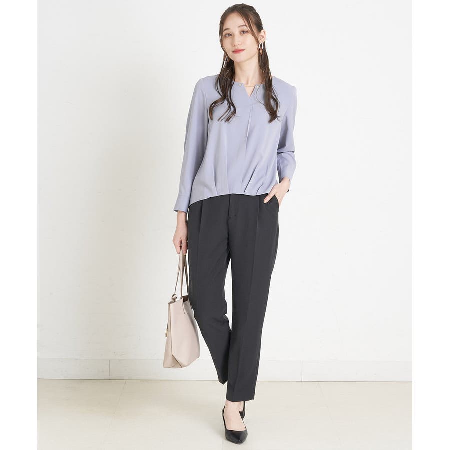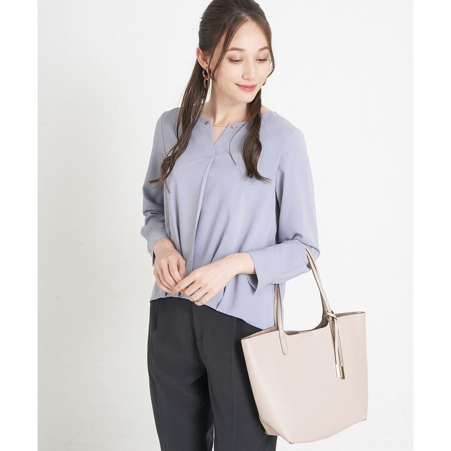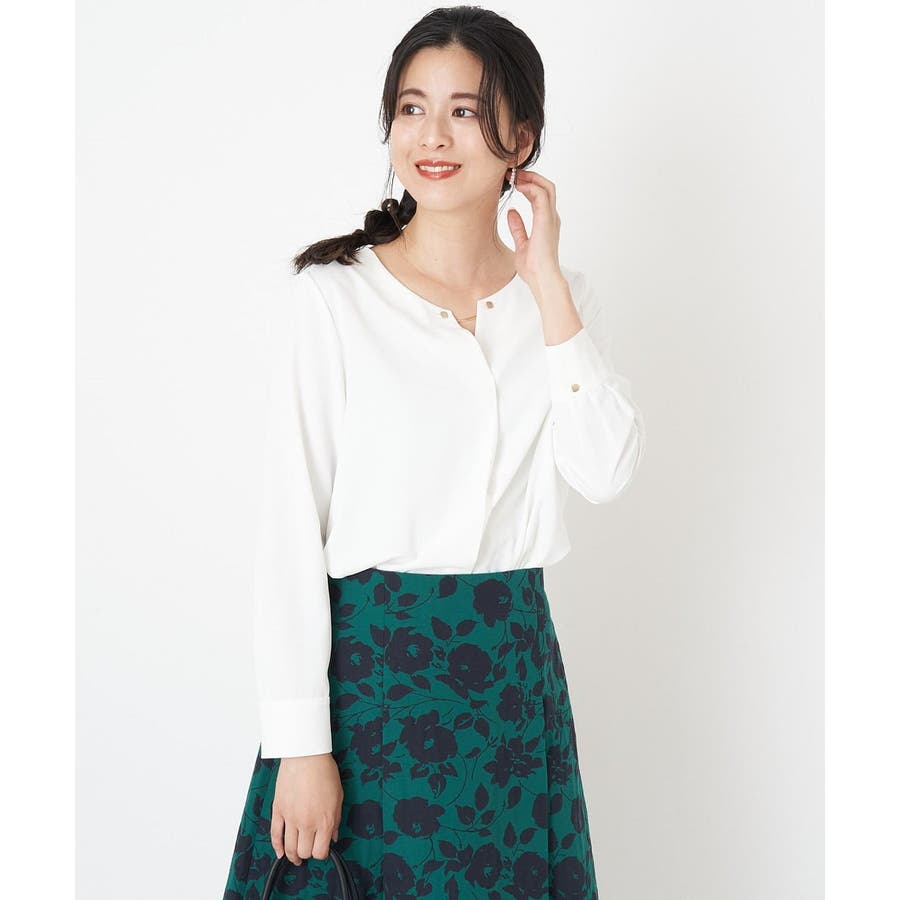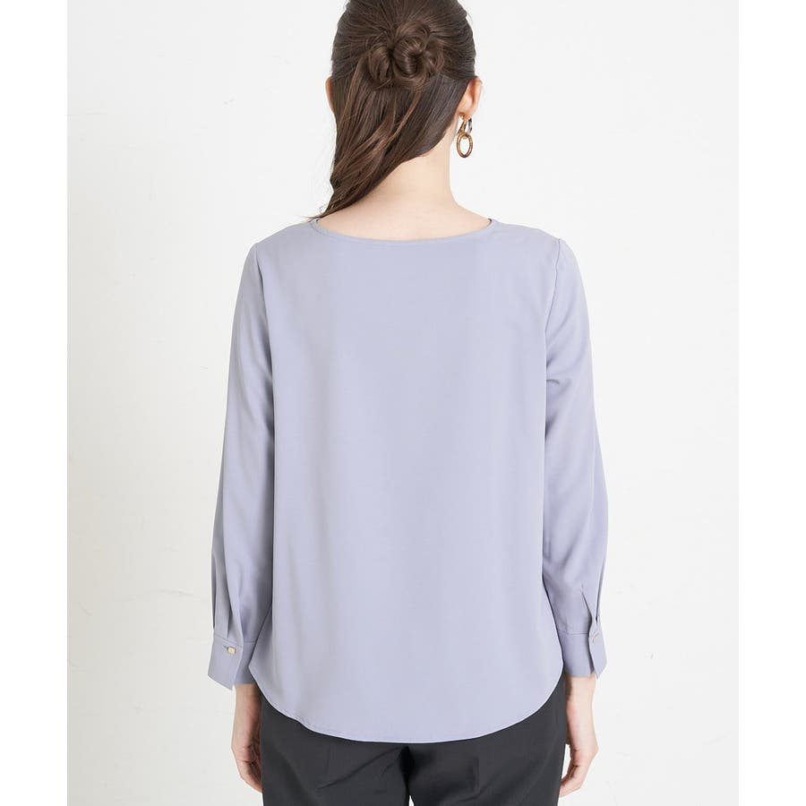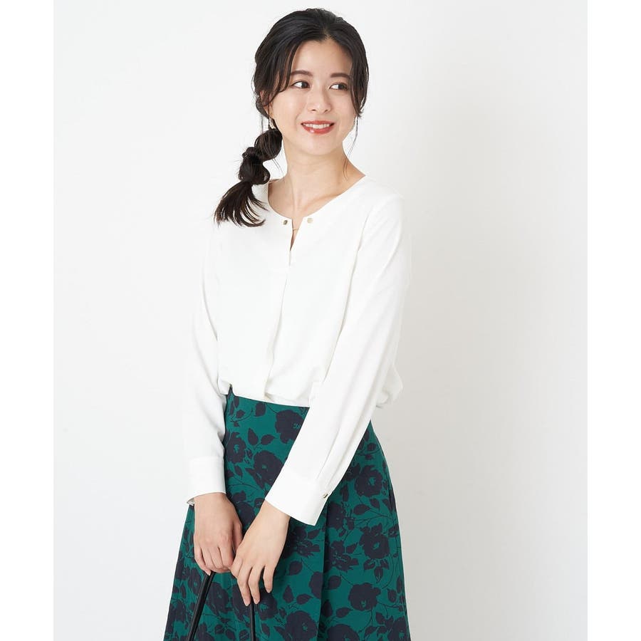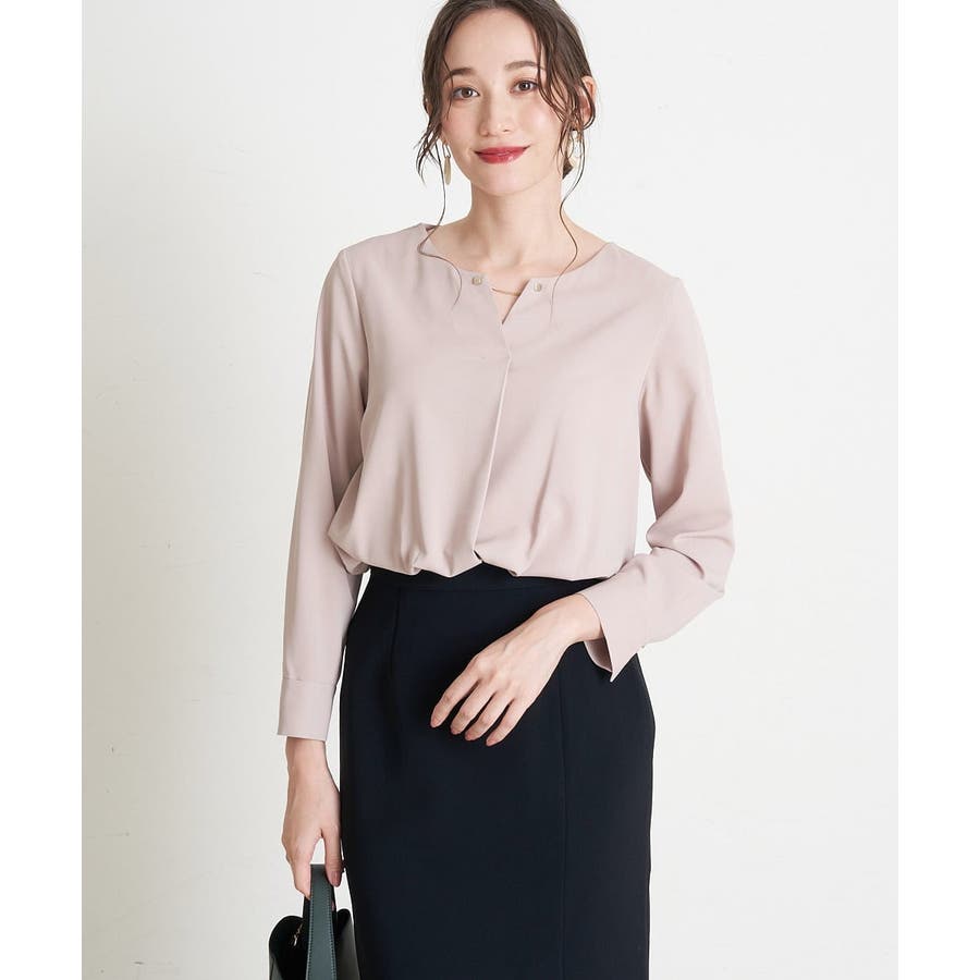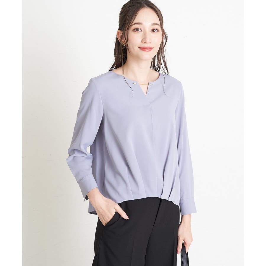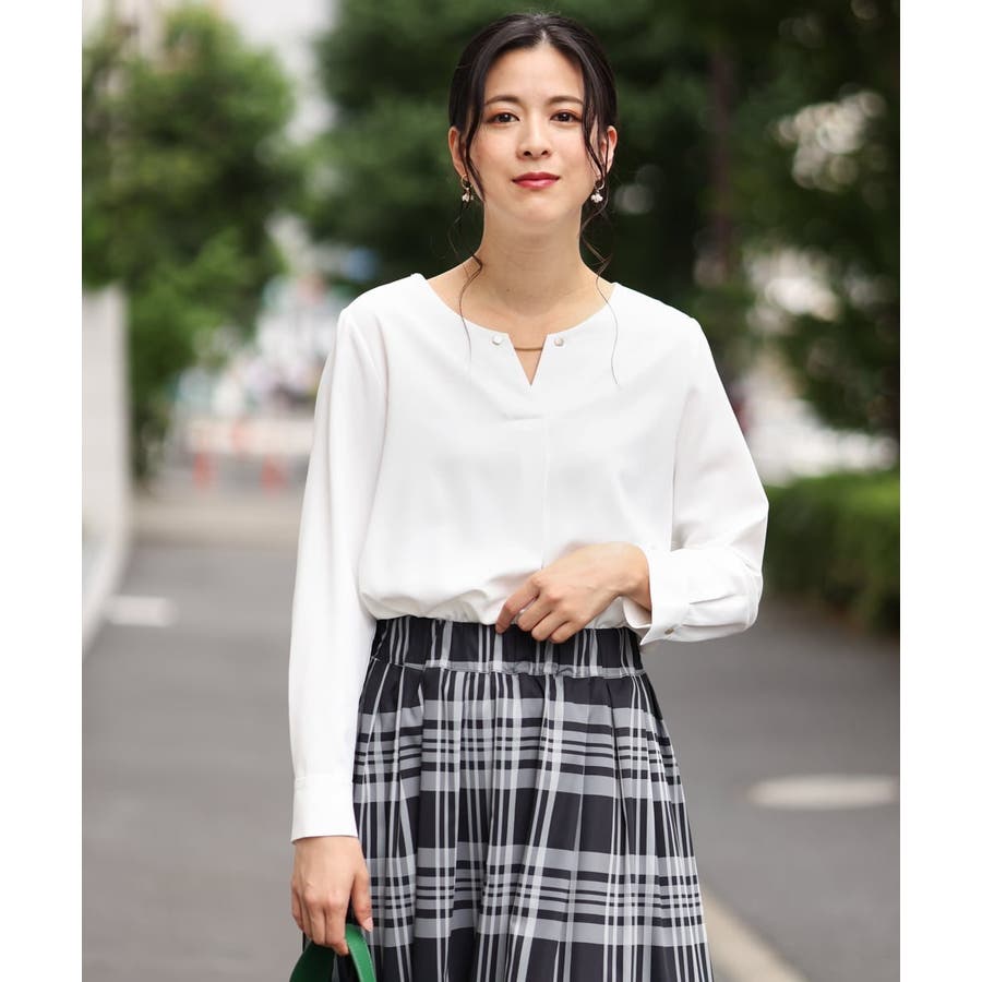 すっきりした襟周りに、チャームがポイントのブラウスです。