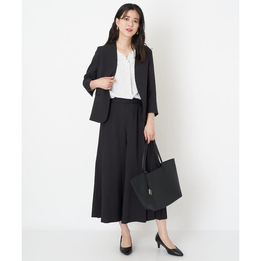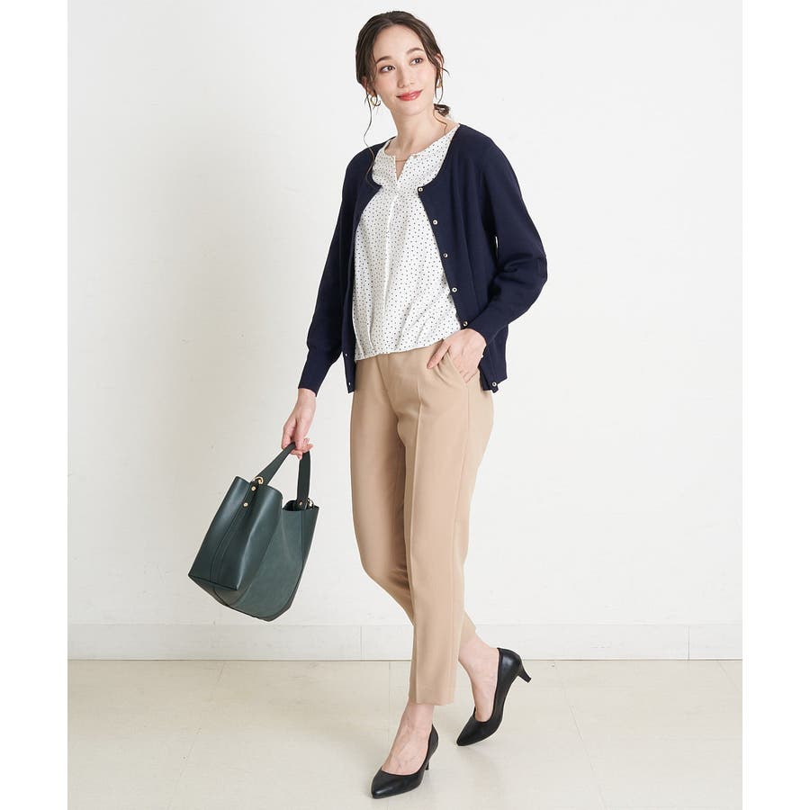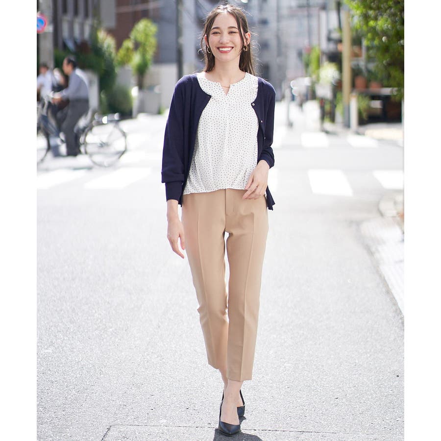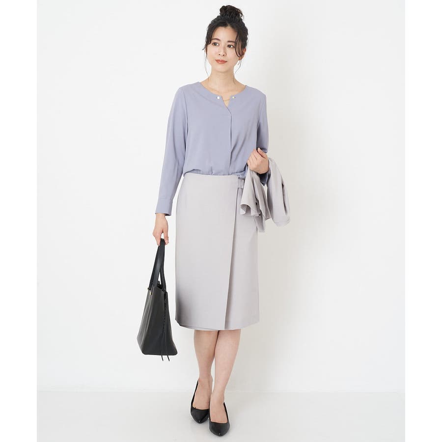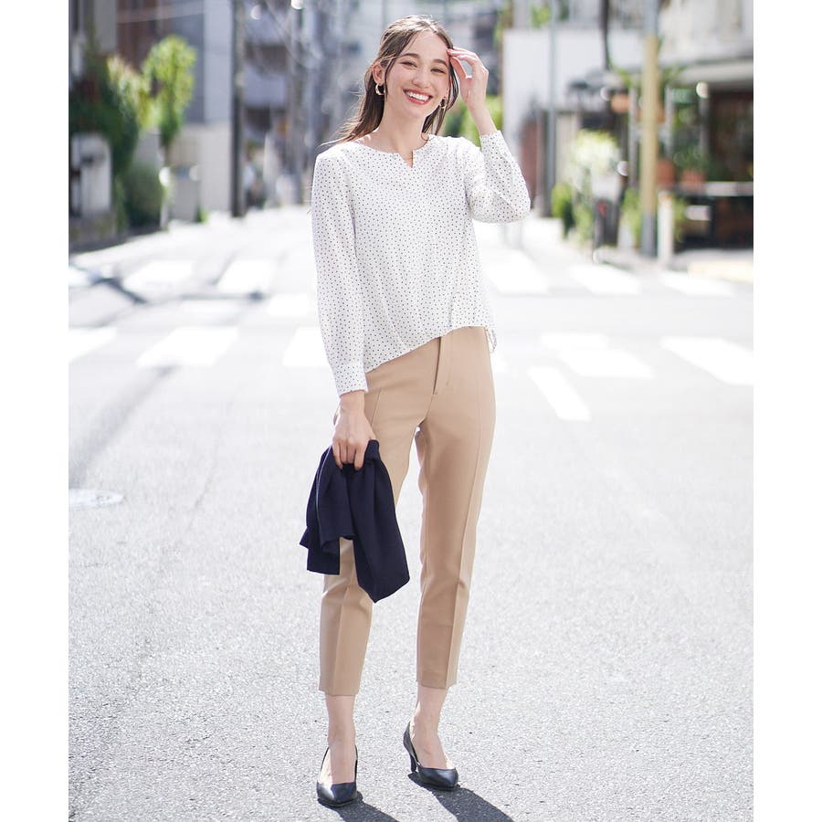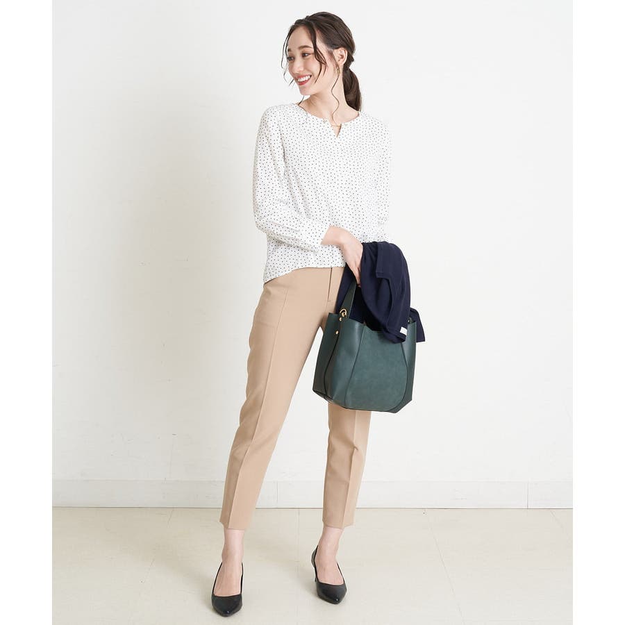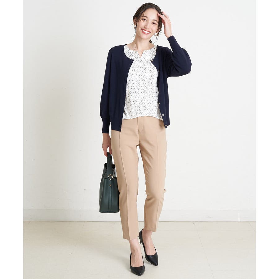 すっきりした襟周りに、チャームがポイントのブラウスです。