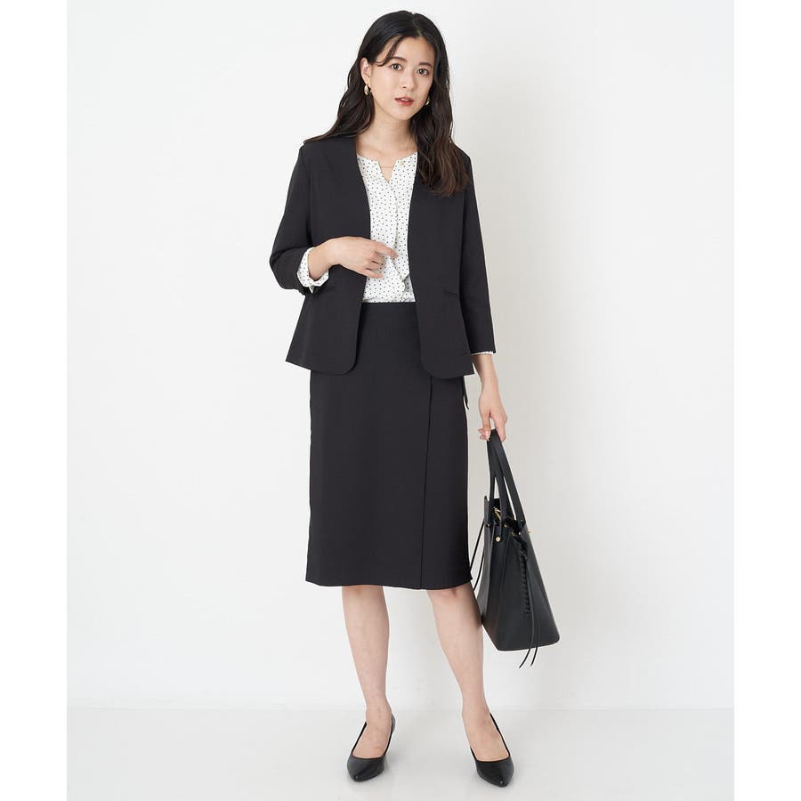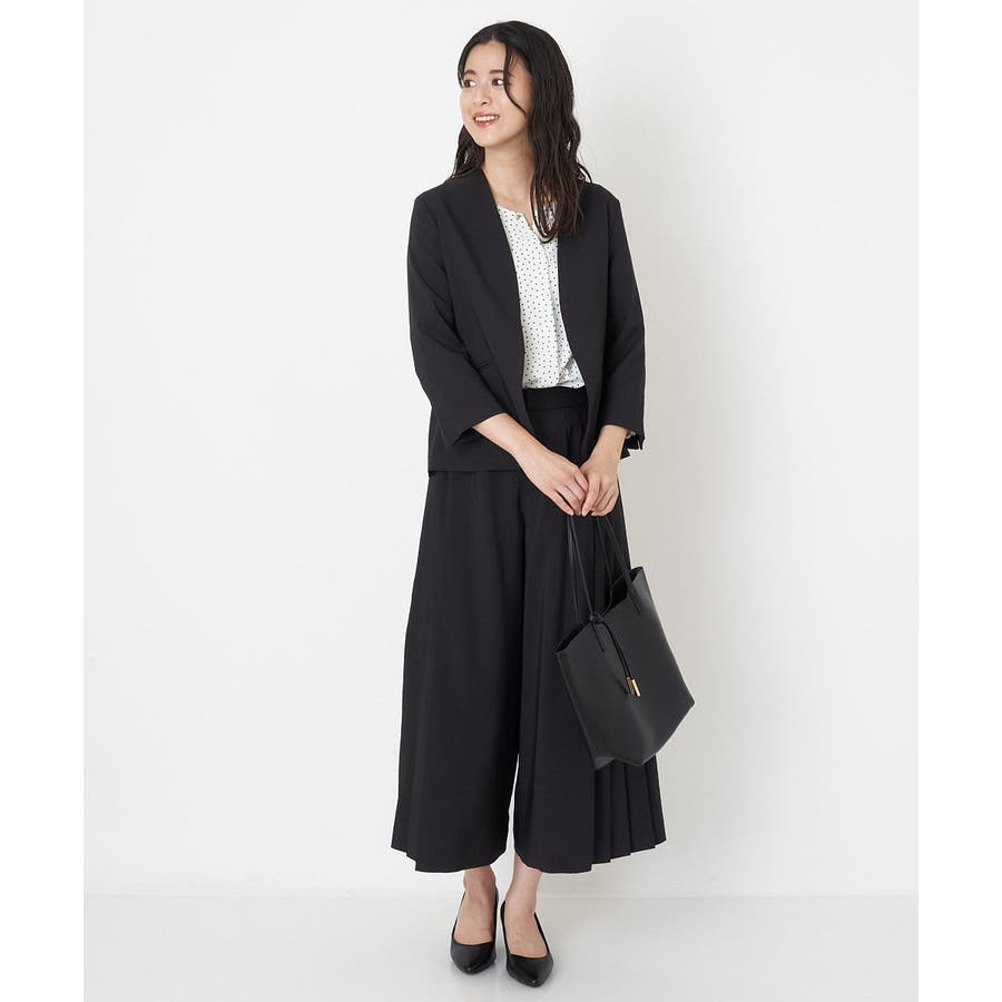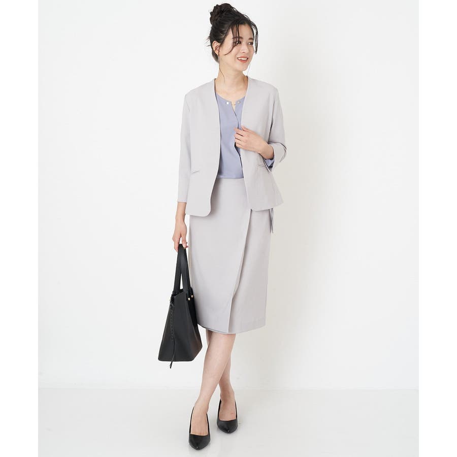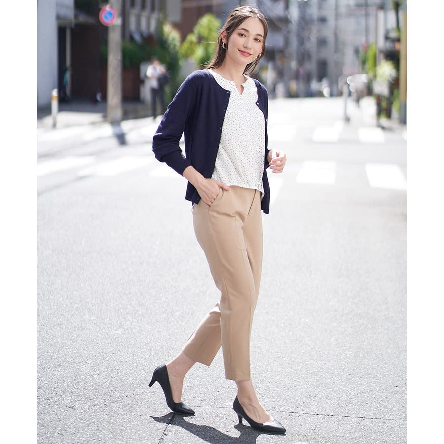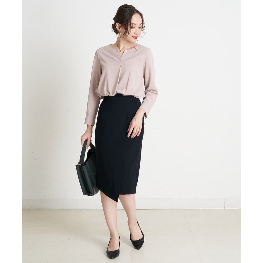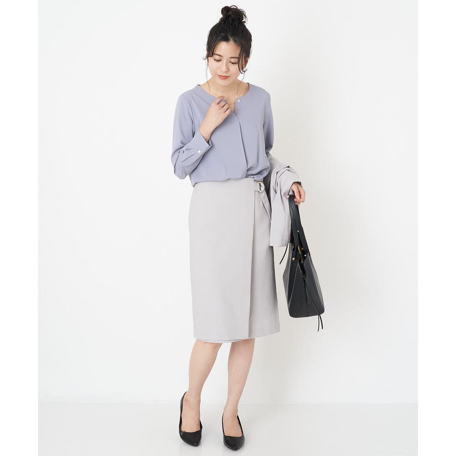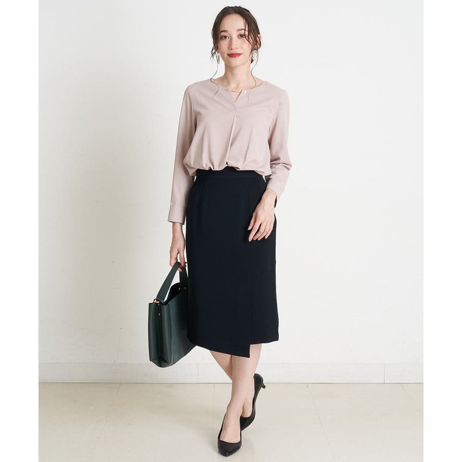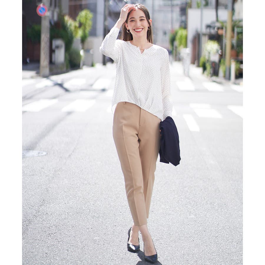 すっきりした襟周りに、チャームがポイントのブラウスです。