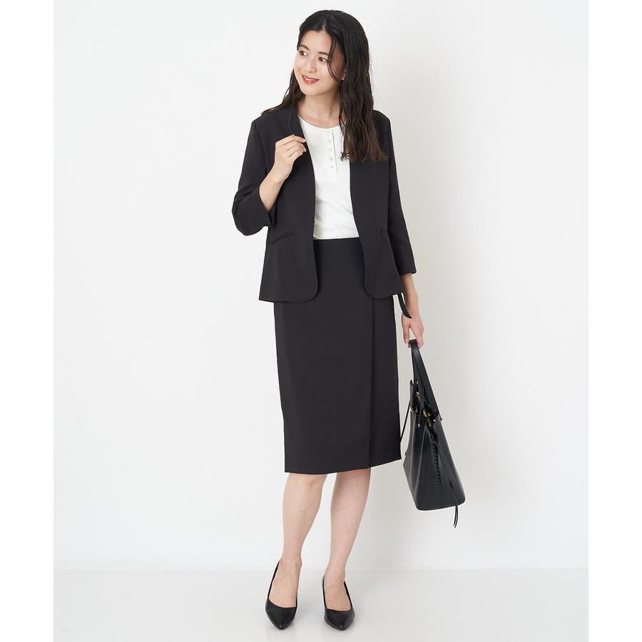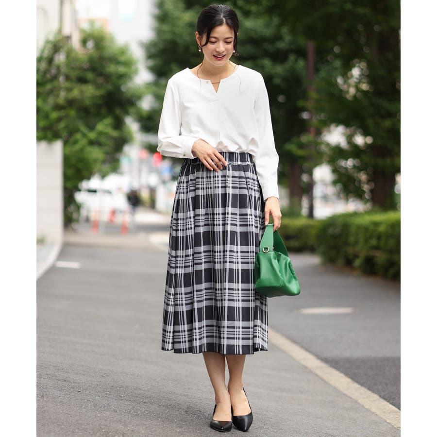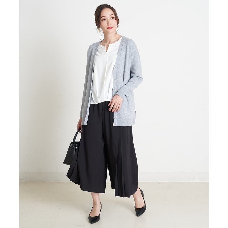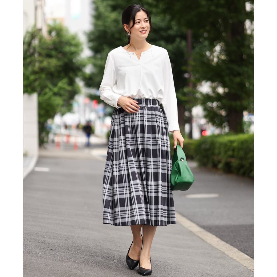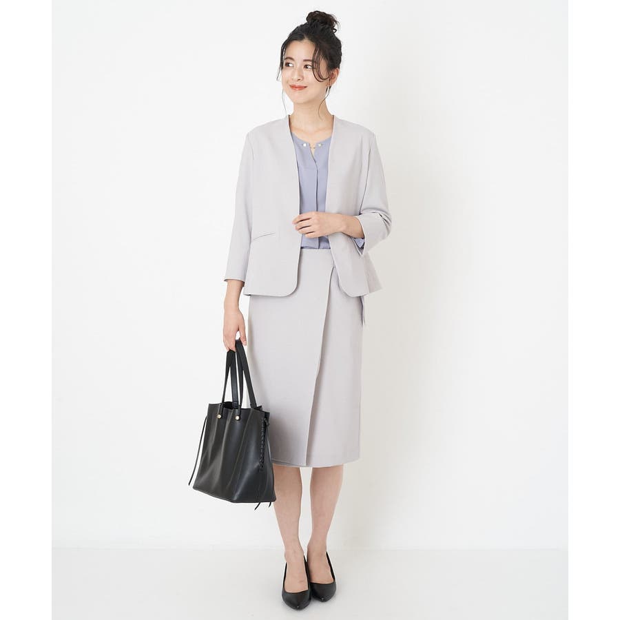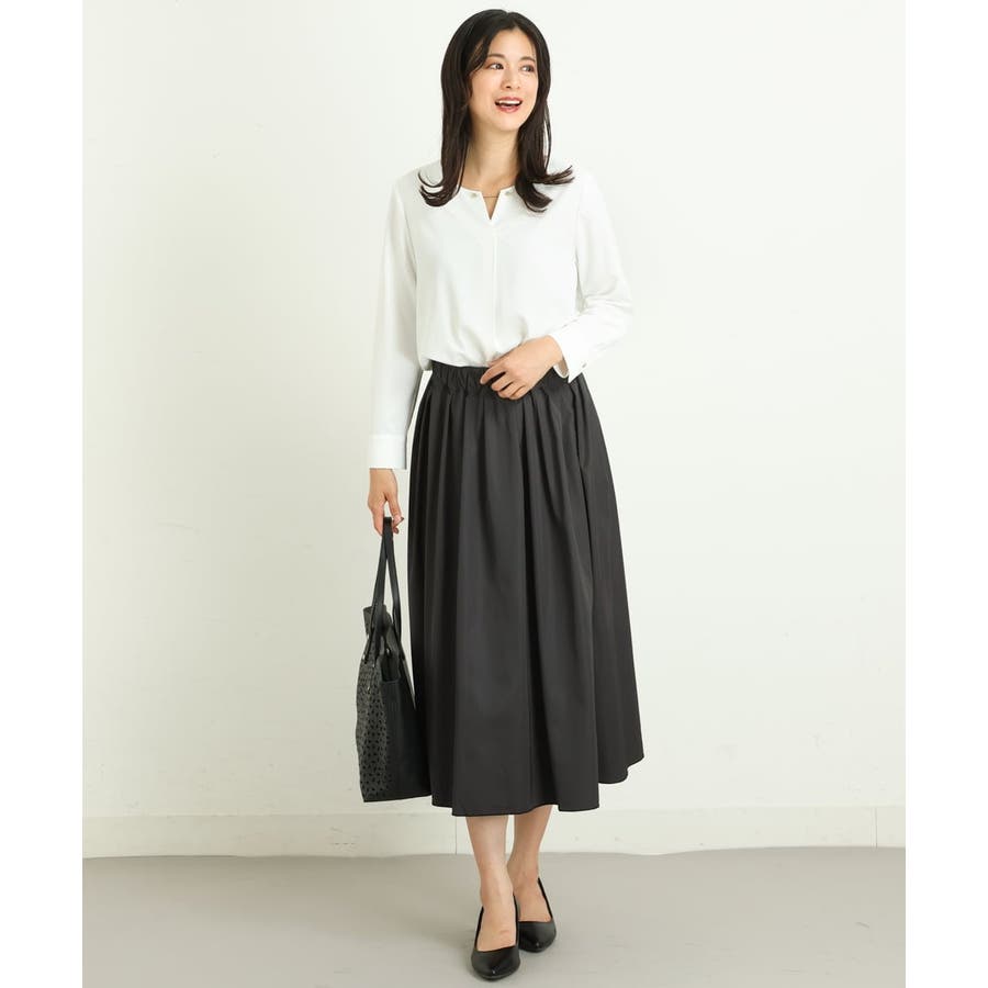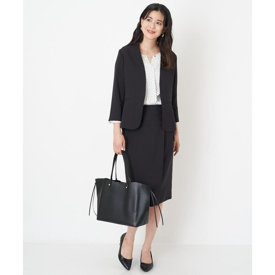 すっきりした襟周りに、チャームがポイントのブラウスです。