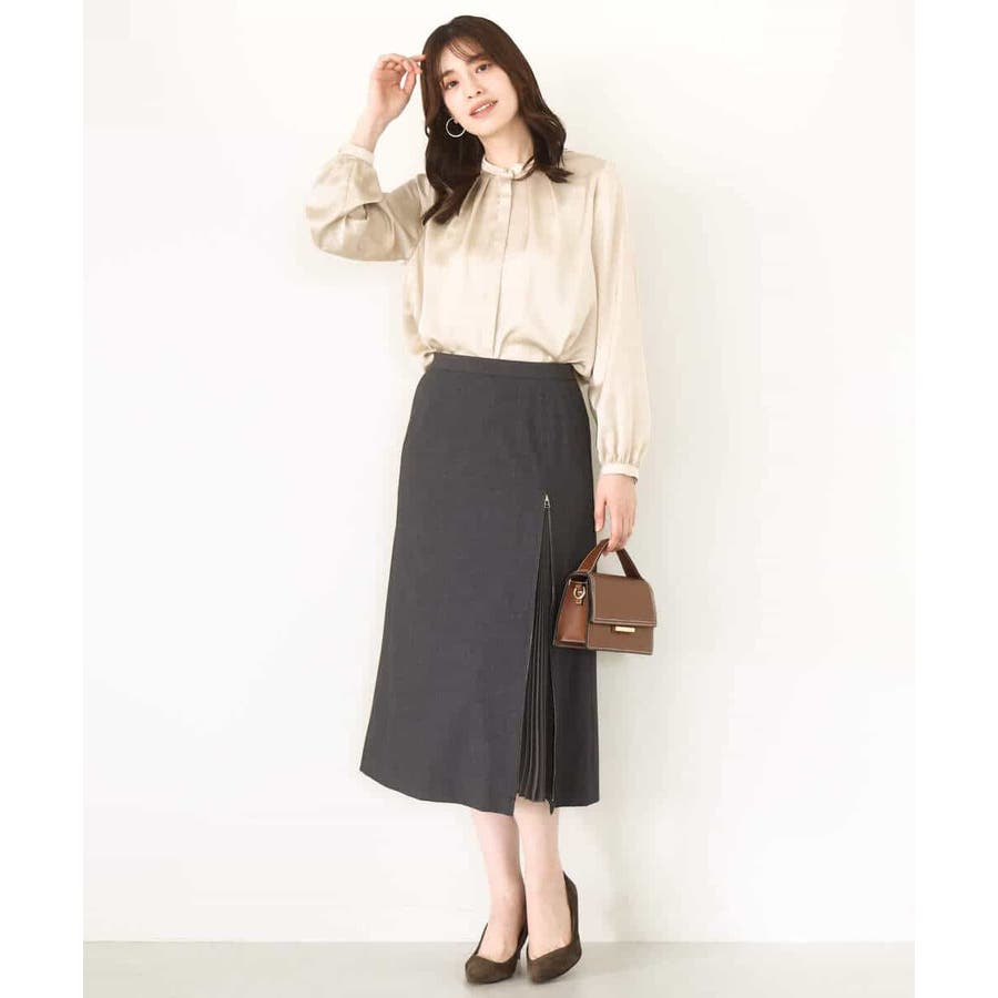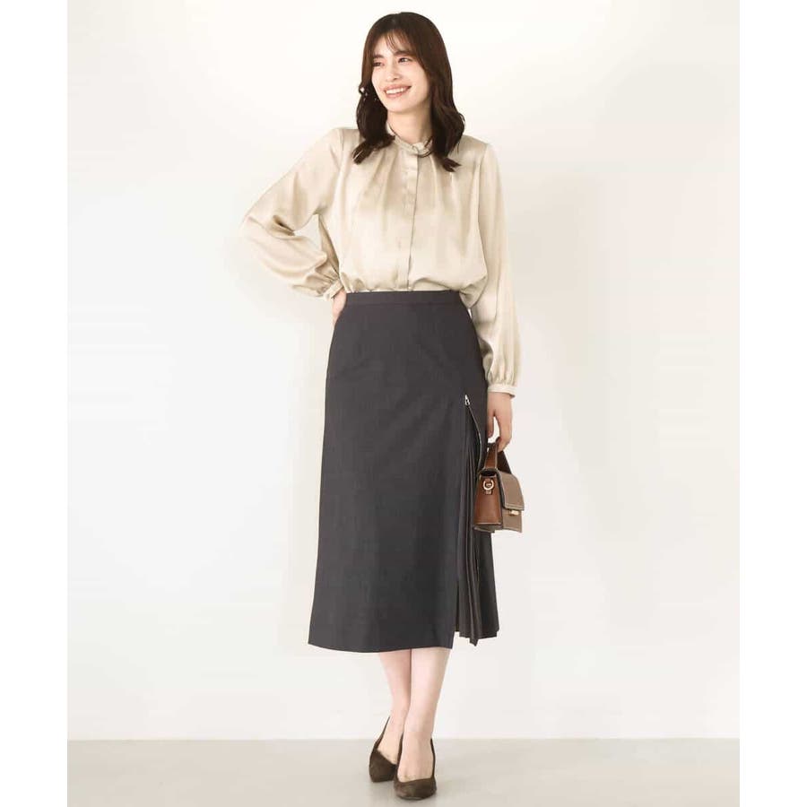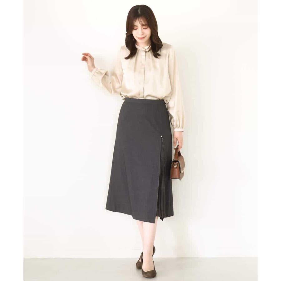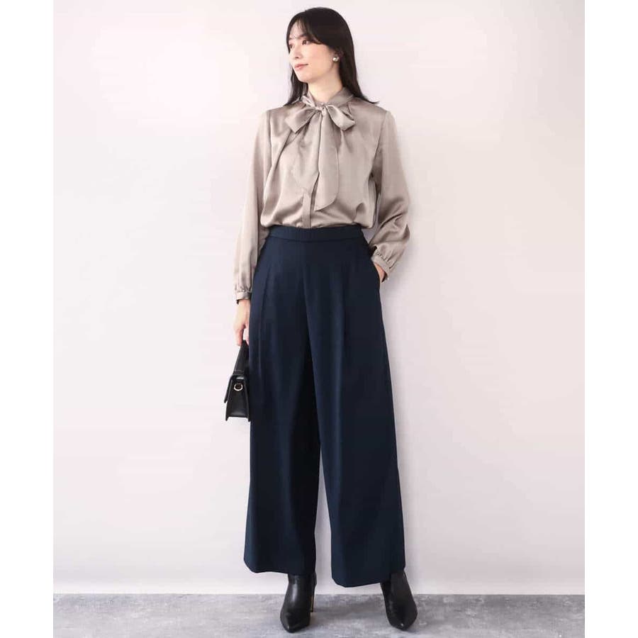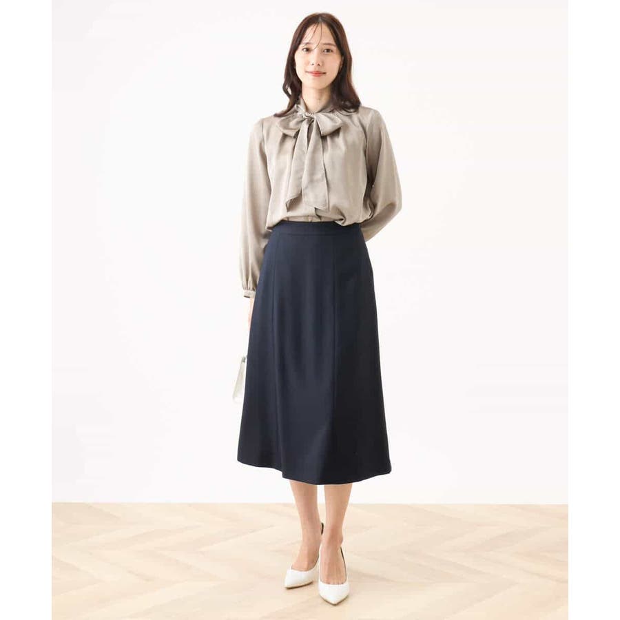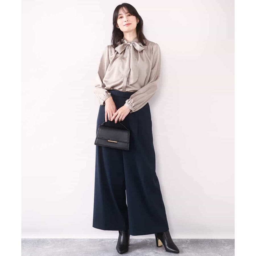大きめのリボンは一枚でも華やか見え。きちんと感のあるブラウスに上品さをプラスしてくれます。一枚でもジャケットのインナーにも映えるデザインは、ジャンスカなどのインナーとしてもおすすめです。