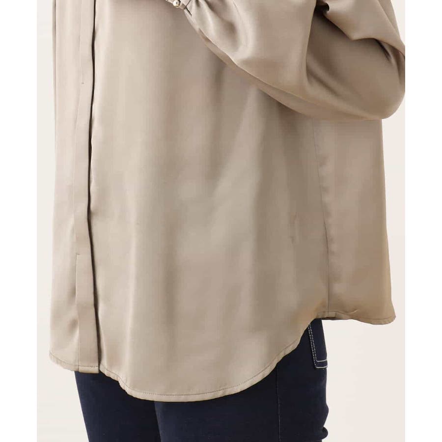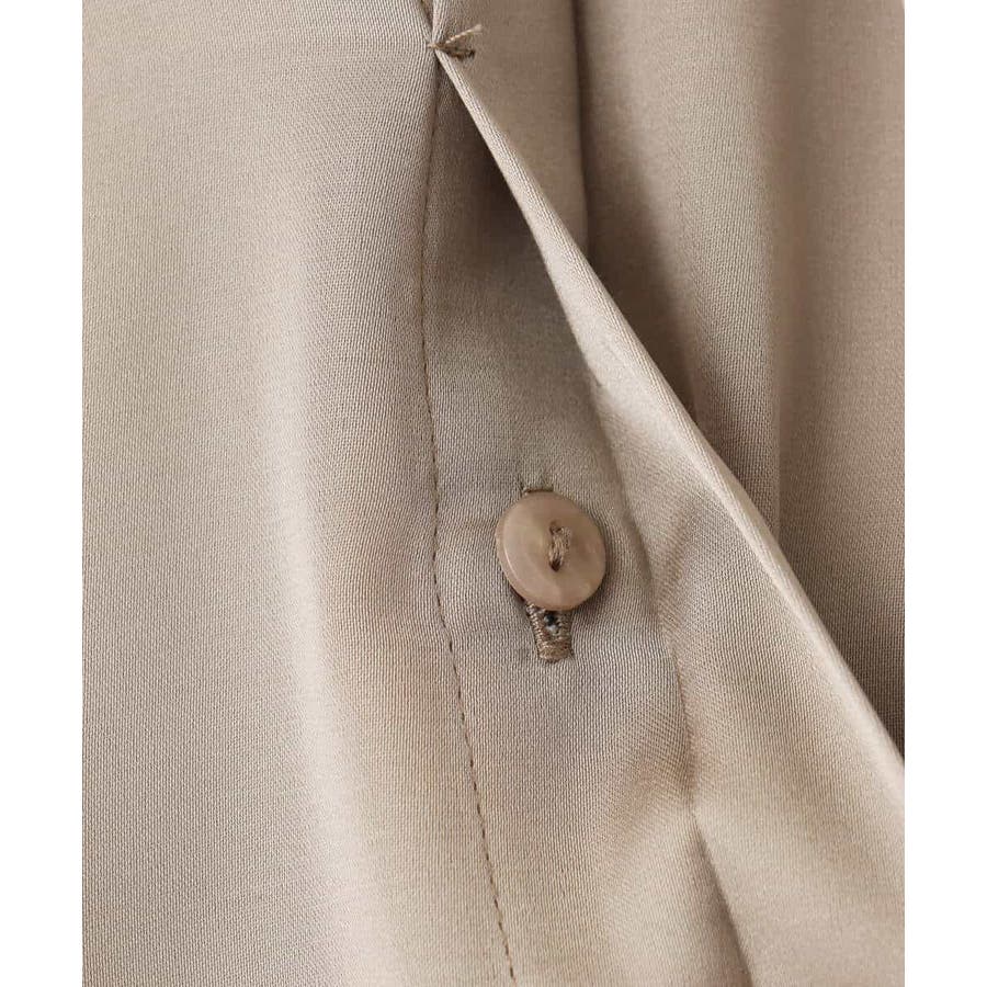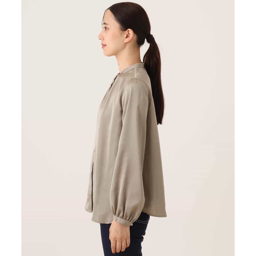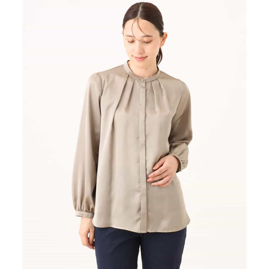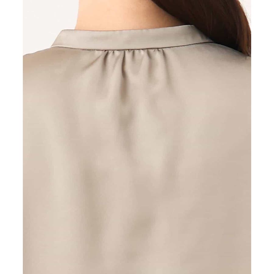 衿ぐりのリボンは取り外し可能。リボンを取り外せばシンプルなバンドカラーブラウスとしてお召しいただけます。フロントにはタックが入っているため、お顔周りの印象を華やかに見せてくれるのもポイント。