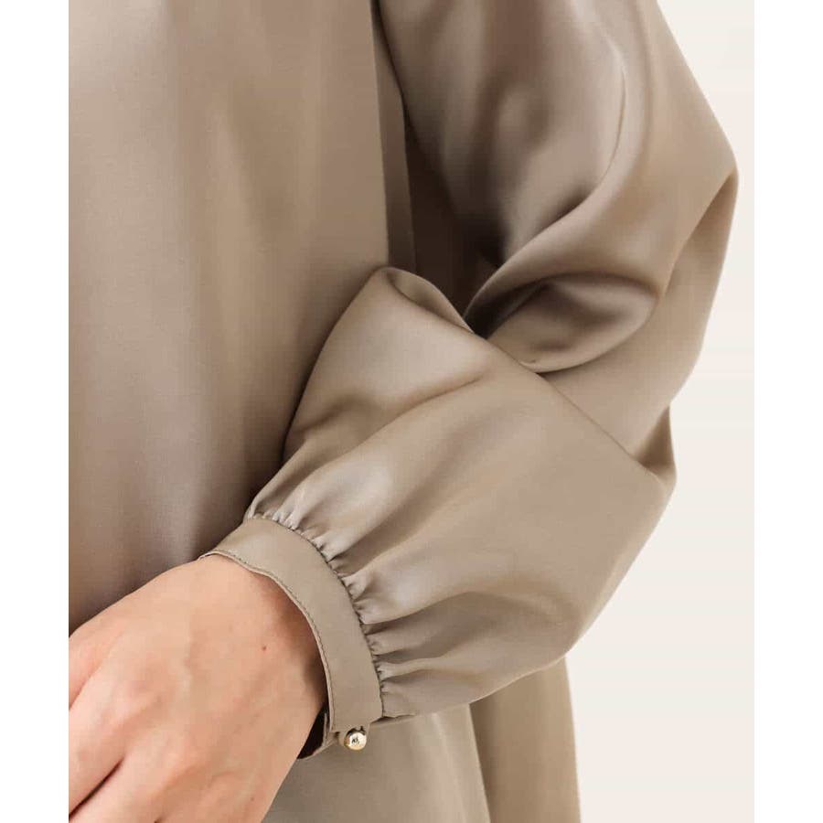 ポリエステル100で天然繊維の風合いに仕上げた微光沢のサテン素材を使用。シワになりにくく、透けにくいドレープ性のある素材です。