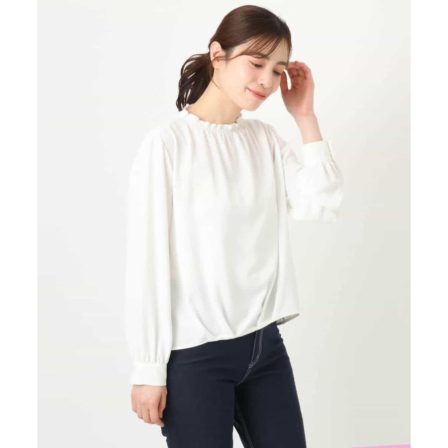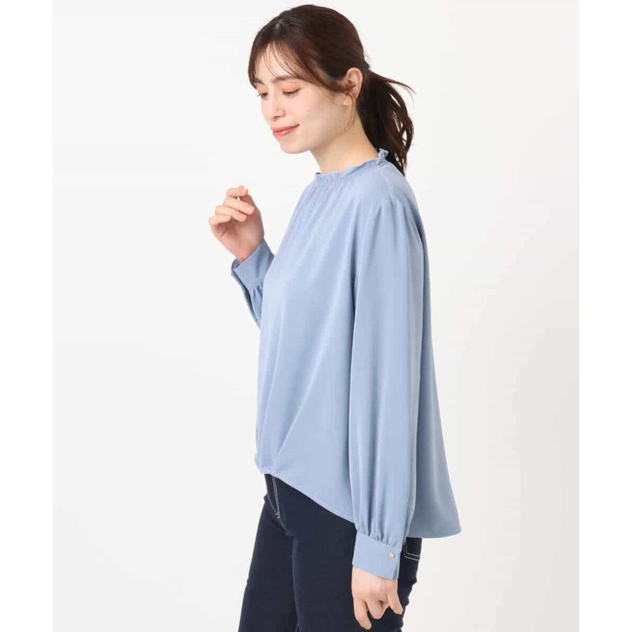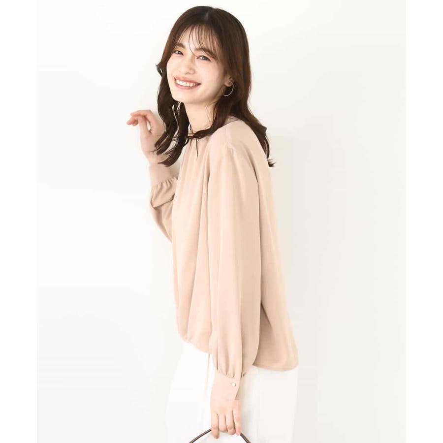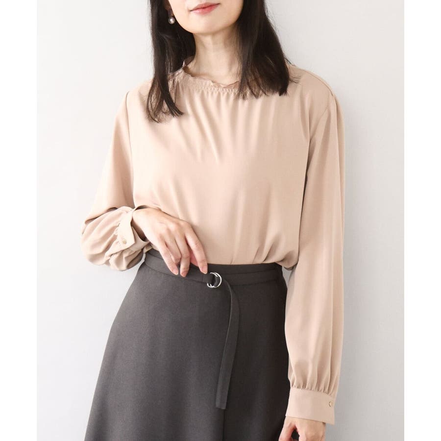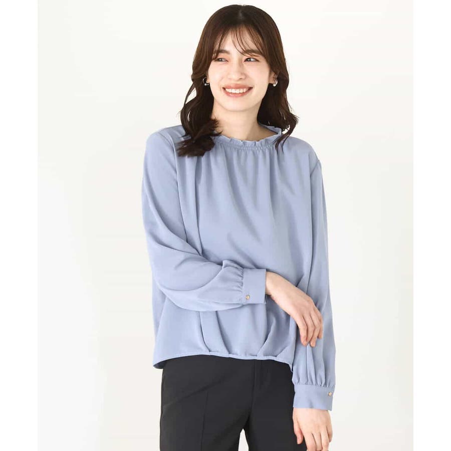 シャーリングネックデザインブラウス/洗える/WEB限定サイズあり