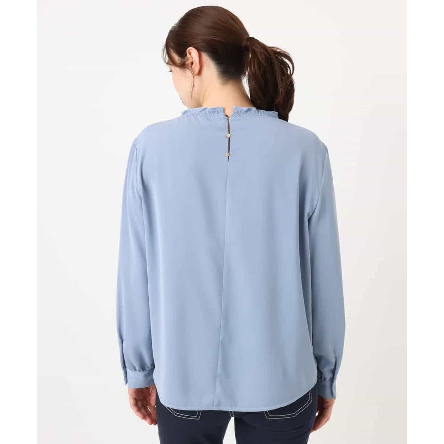 そのまま着用するだけでバランスよく着こなせる裾タックデザインブラウスに新作が登場。シャーリングネックデザインで、衿ぐりが優しく体に沿う女性らしい印象のブラウスです。後ろ衿ぐりは釦をポイントに、後ろ姿も抜かりないデザインに。