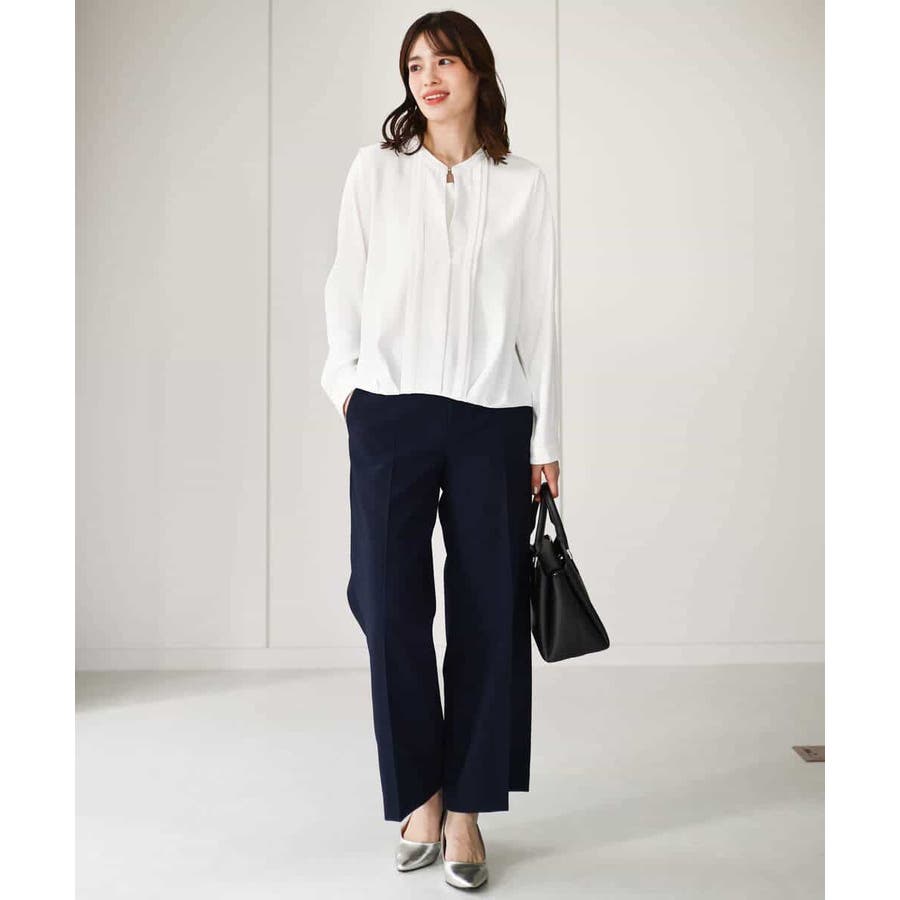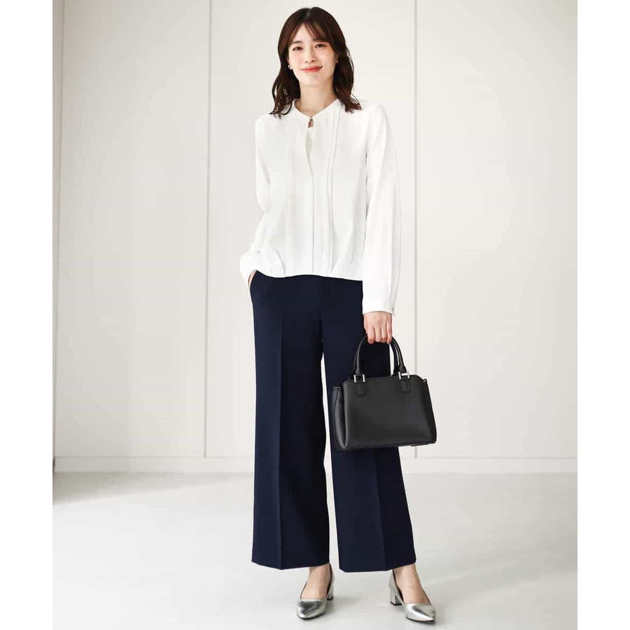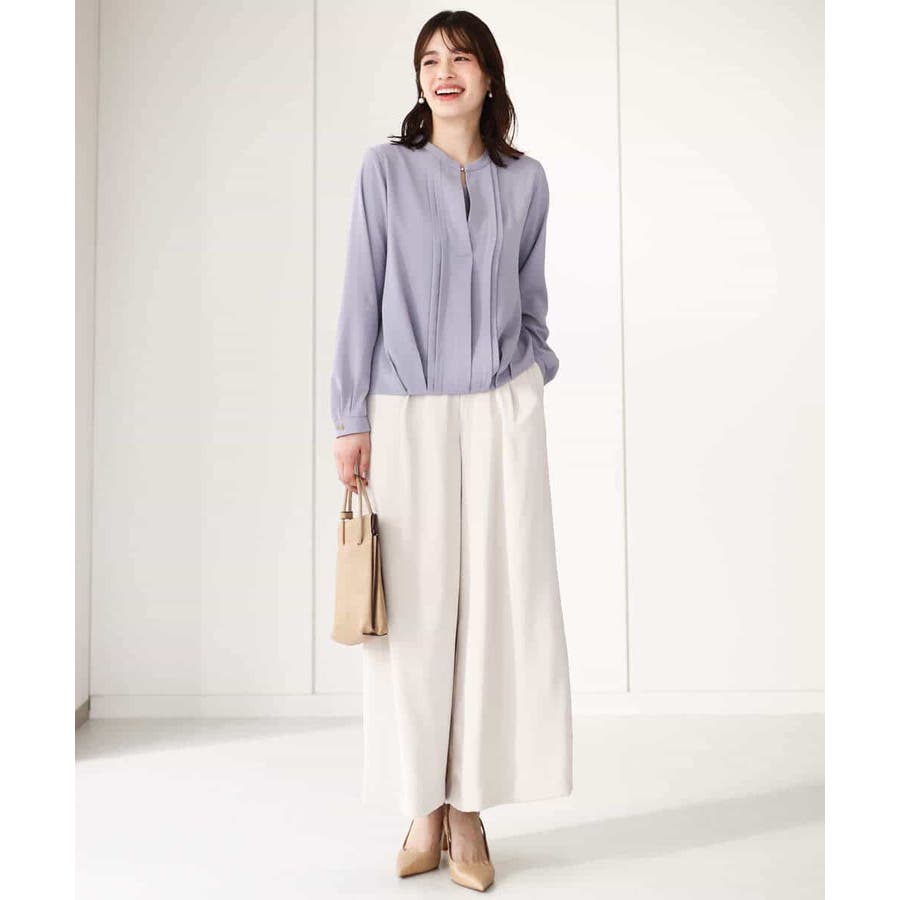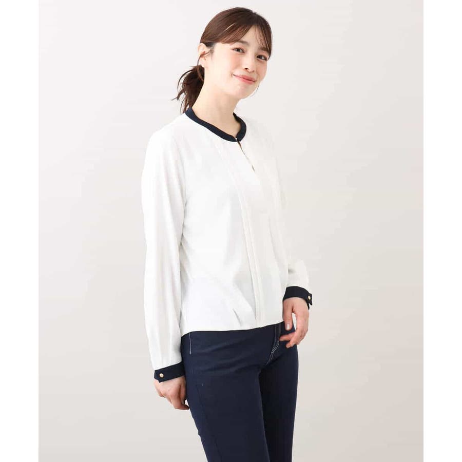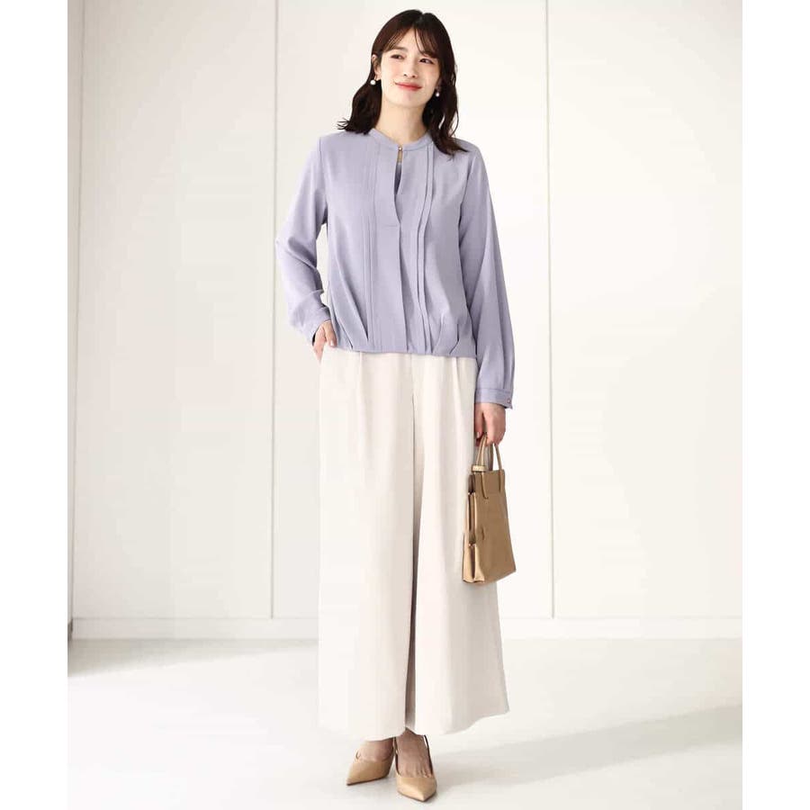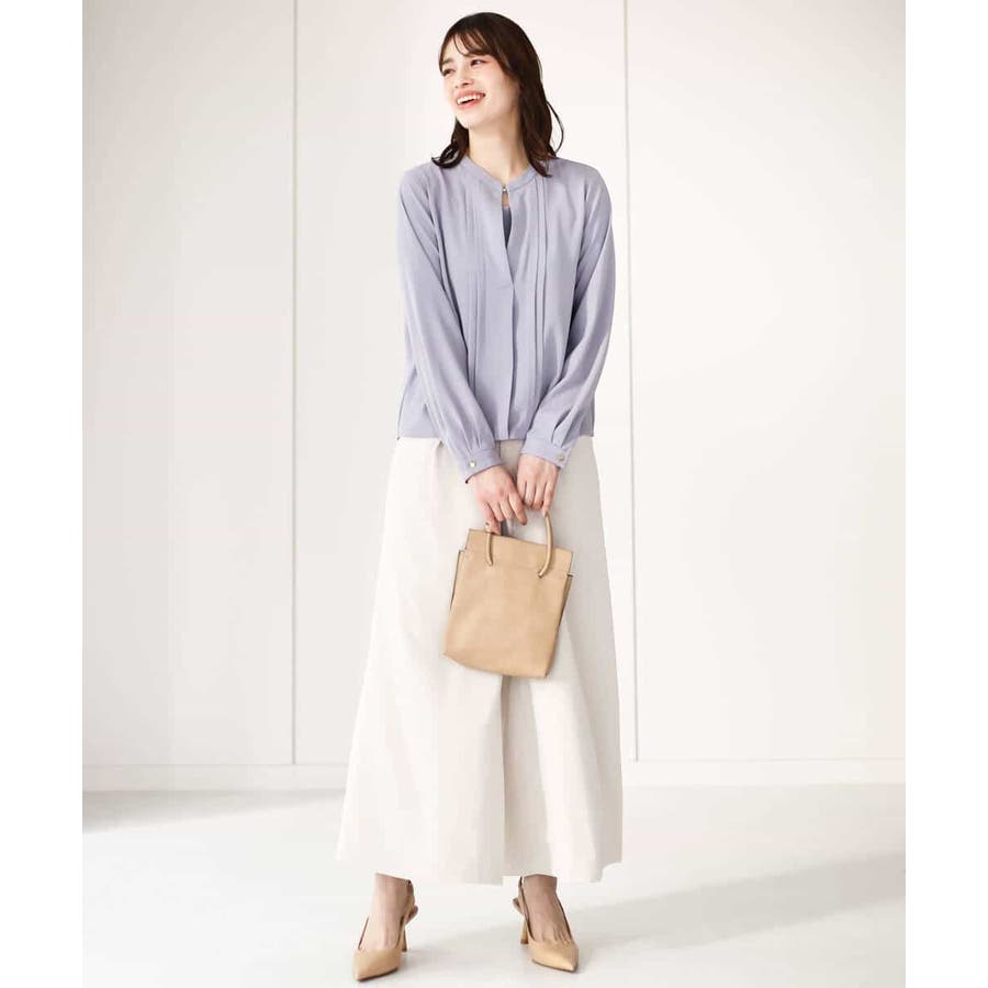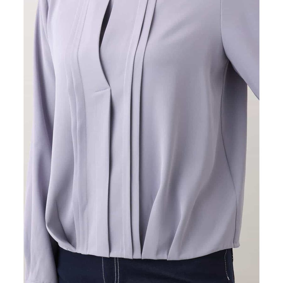 前裾にタックを施すことで、そのまま着てもすっきりとした着こなしが叶います。またタックの位置も計算することでウエストインしてもきれいに決まります。パンツ、スカートと合わせるボトムを選ばず、ジャケットなどのインナーにもおすすめなブラウスは色違いで持っていても困りません。
