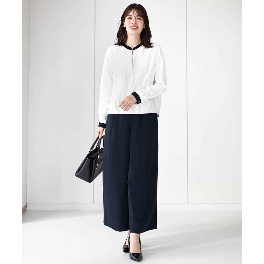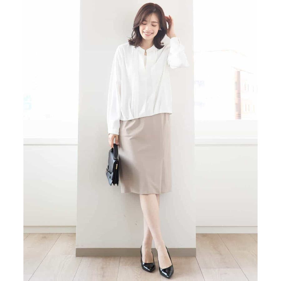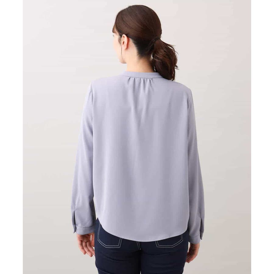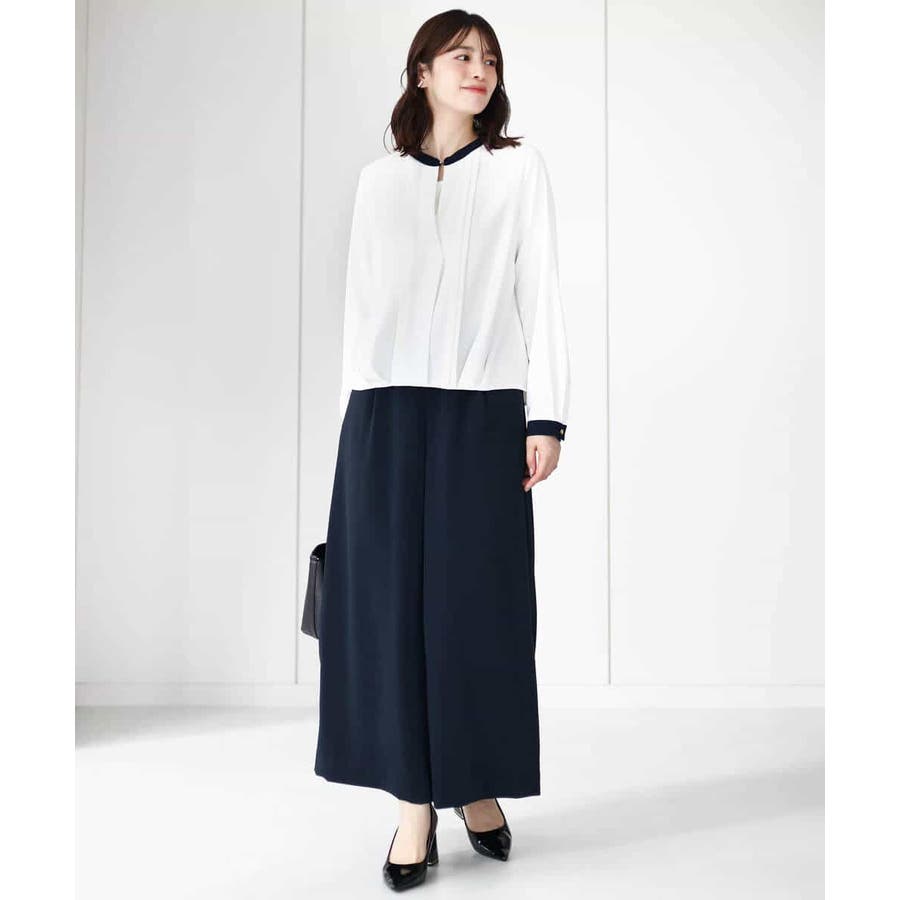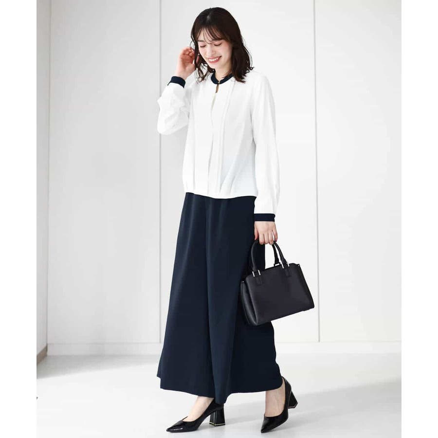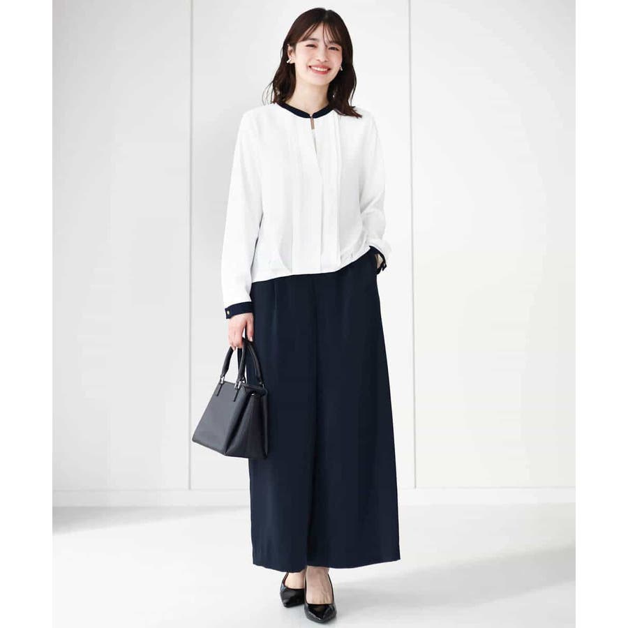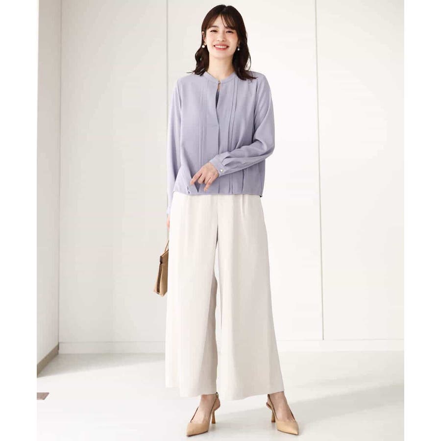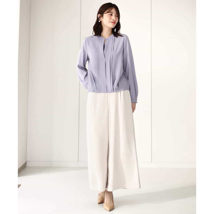 前裾にタックを施すことで、そのまま着てもすっきりとした着こなしが叶います。またタックの位置も計算することでウエストインしてもきれいに決まります。パンツ、スカートと合わせるボトムを選ばず、ジャケットなどのインナーにもおすすめなブラウスは色違いで持っていても困りません。