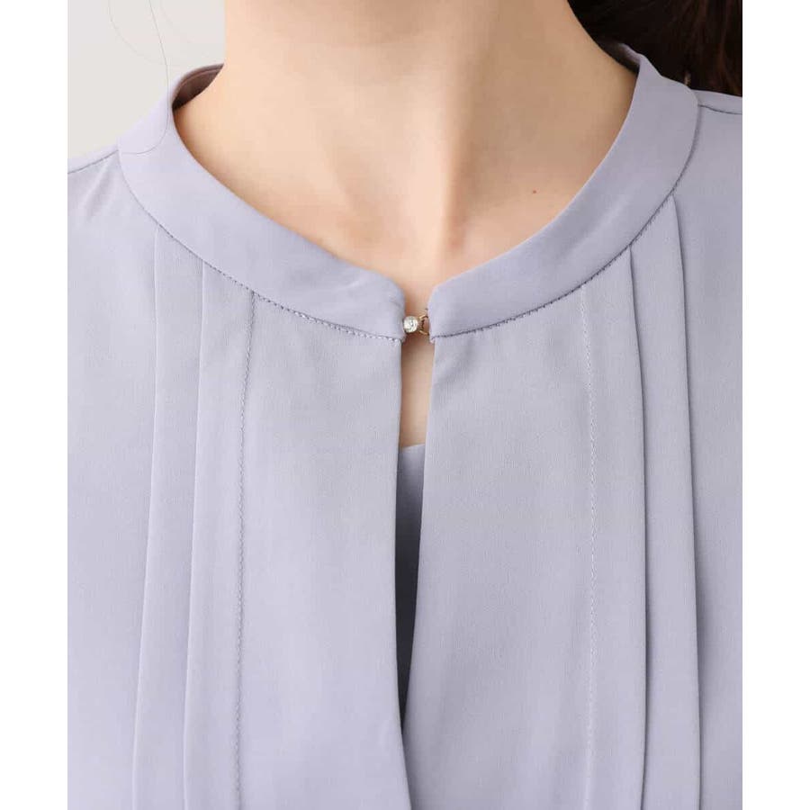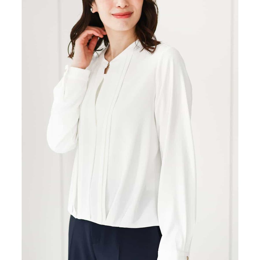 定番人気の前裾にタックが入ったブラウス。深めに取ったフロントの合わせですっきり見えが叶います。飾りホックとピンタックでアクセントいらずで華やかさをプラス。